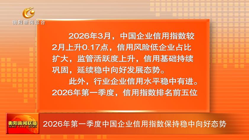 2026年第一季度中国企业信用指数保持稳中向好态势
