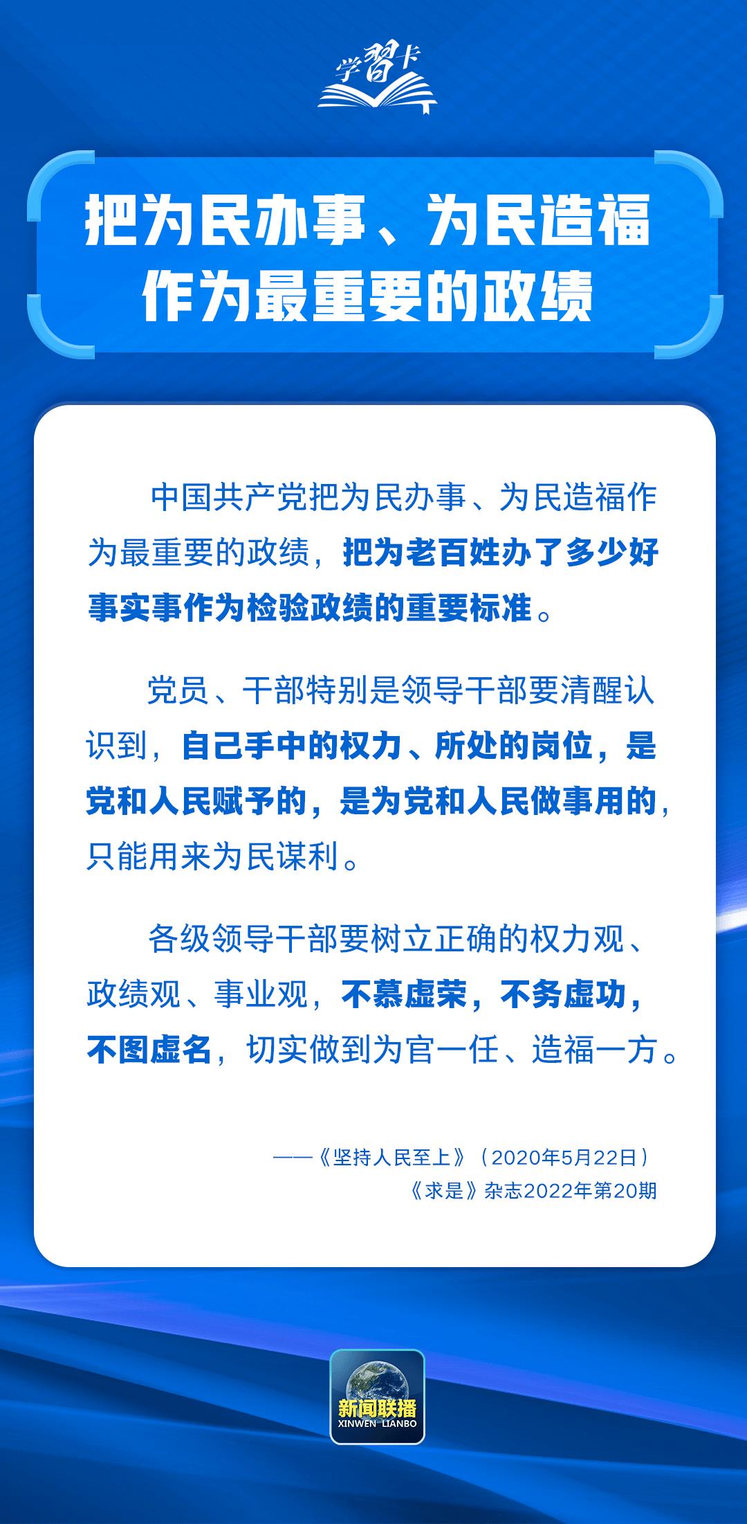 学习卡丨“把为民办事、为民造福作为最重要的政绩”