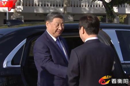 独家视频丨习近平乘车抵达庆州博物馆 韩国总统热情迎接