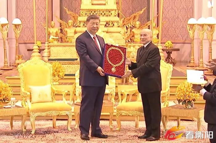 独家视频丨习近平接受“柬埔寨王国民族独立大项链级勋章”