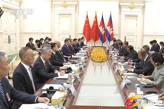 新华社快讯:国家主席习近平同柬埔寨首相洪玛奈举行会谈