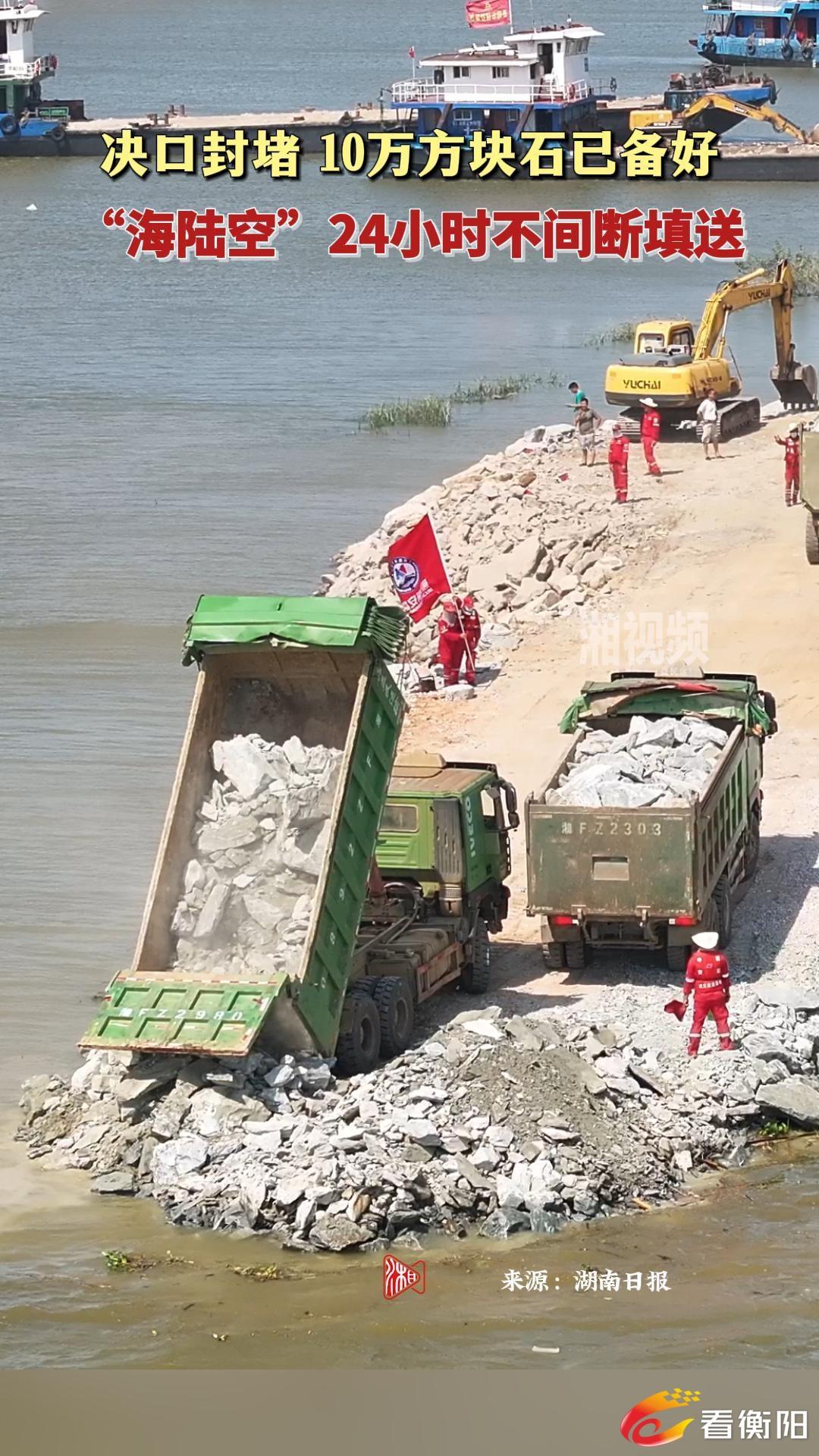 决口封堵,10万方块石已备好!“海陆空”24小时不间断填送