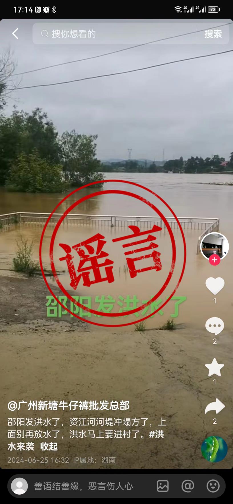 辟谣侠盟丨邵阳县一男子因散播涉洪涝灾害网络谣言被罚