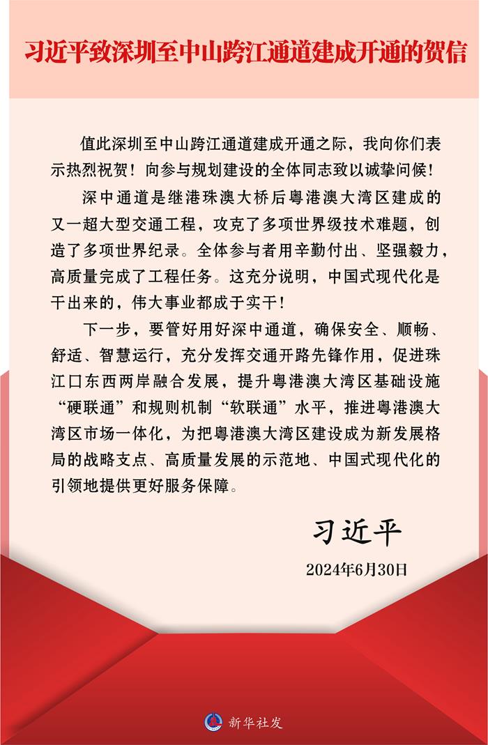 习近平致信祝贺深圳至中山跨江通道建成开通