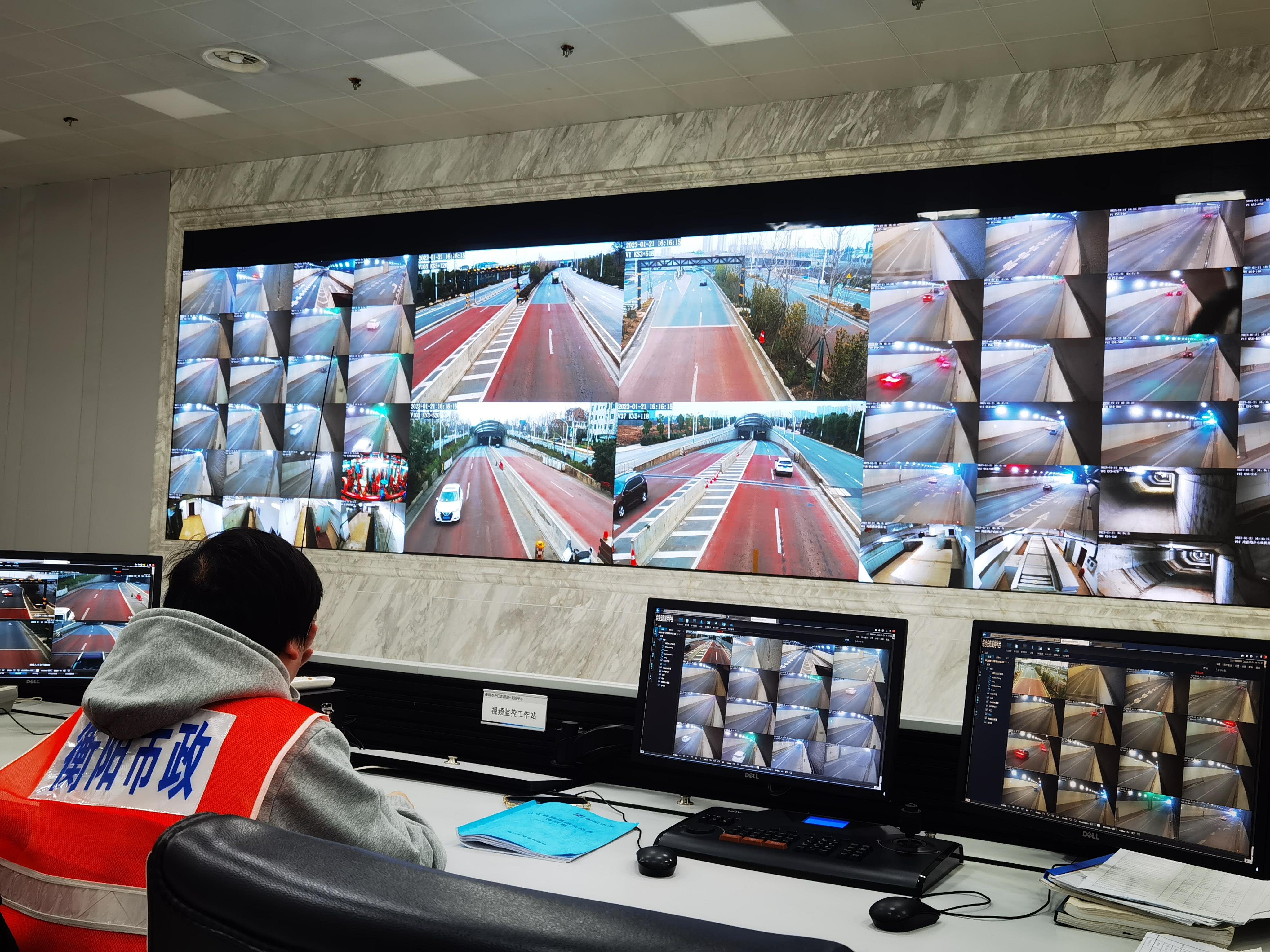 1月21日是除夕,在合江套隧道监控中心,值班人员陈涛正紧盯着监控大屏幕,观察隧道内的情况。合江套隧道全长约1.8KM,共装有103个摄像头,监控大屏可同时显示44个画面。监控中心作为合江套隧道的“中枢大脑”,需要24小时值班值守,而最长的一个班需要从下午2点半上到第二天早上7点。