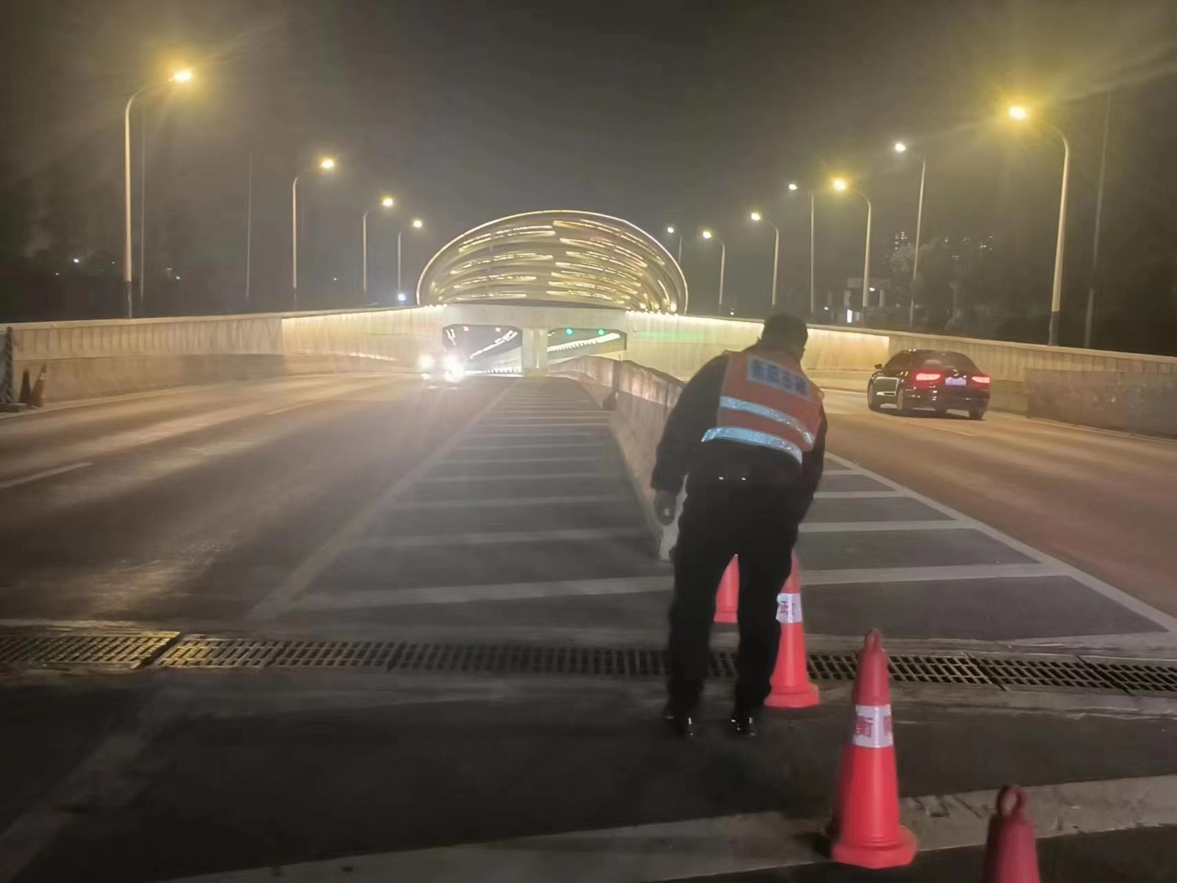 晚上11点,隧道出入口关闭后,黄华还要进入隧道内部,对隧道的照明、电力、排水等应急设施进行巡查和维护,一直要工作到第二天早上7点。从值班值守、隧道应急处置到设备巡查维护,黄华和同事们时刻准备着,用责任守护着合江套隧道安全畅通。
