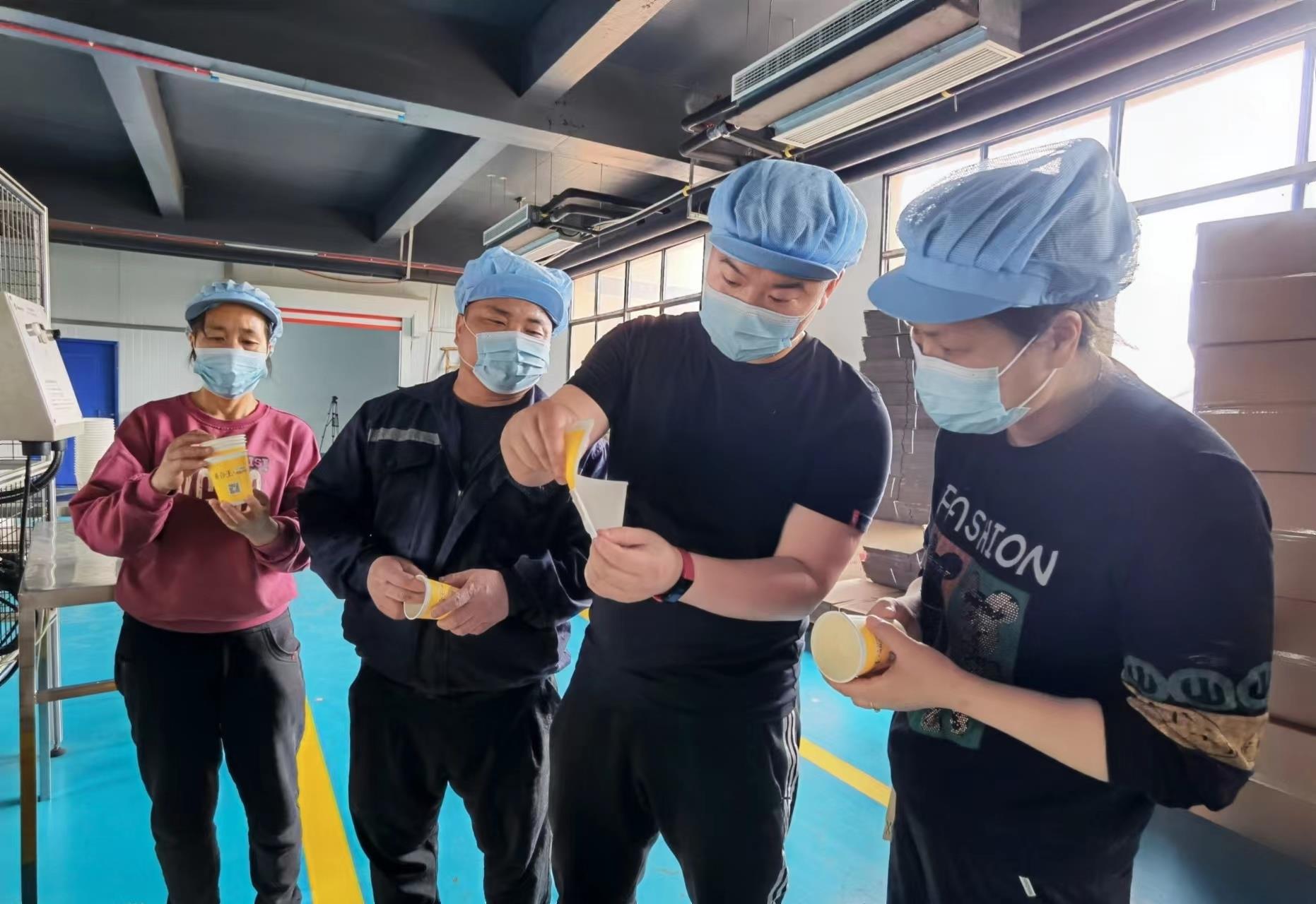 何军:“我们公司从2006年成立到现在已经有17年的发展历程了,一直扎根在农村,在我们民康村已经形成了产业聚集,涵盖一次性环保纸塑、纸杯、纸碗、纸箱包装、垃圾袋、台布等一系列产品。”