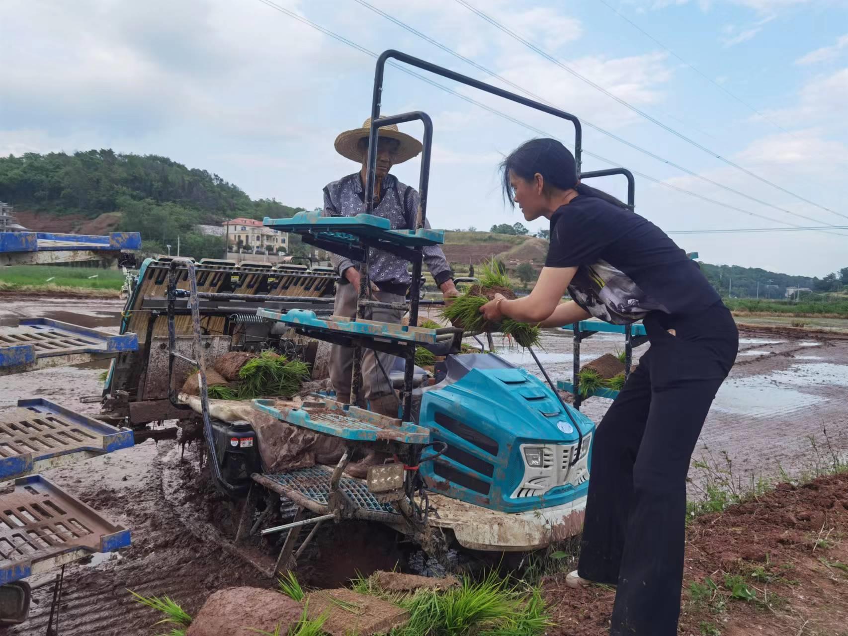 近日,在衡南县车江街道铁市村田间地里,回荡着阵阵机器轰鸣声,王静正娴熟地驾驶插秧机来回穿梭。
