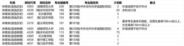 本科批体育类第二次征集志愿计划共134个。根据政策规定,所有来湘招生高校生源不足时,可在批次录取控制分数线下20分以内从高分到低分投档录取,其中,体育类专业的文化最大降分幅度为14分、专业最大降分幅度为6分。(点击图片可放大)