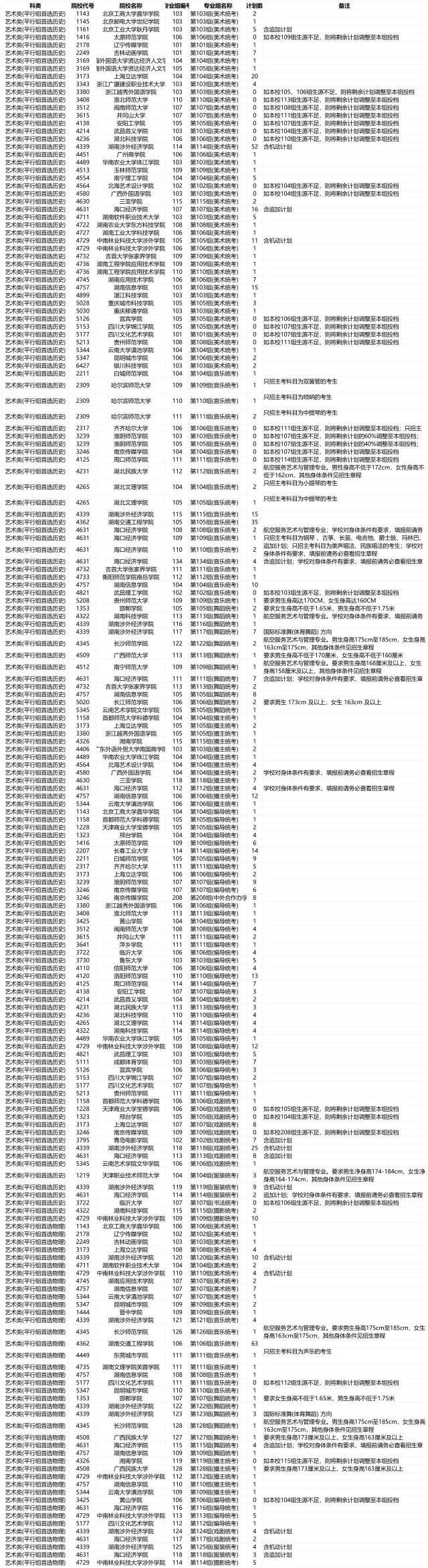 本科批艺术类平行组征集志愿计划共716个。平行组高校(专业)使用我省统考成绩,采用平行志愿投档方式,按我省统一的投档规则排序投档。招生高校依据本校招生章程中的录取规则,对已投档到该校的考生进行录取。根据政策规定,所有来湘招生高校生源不足时,可在批次录取控制分数线下20分以内从高分到低分投档录取,其中,艺术类专业的文化不降分,专业最大降分幅度为6分。(点击图片可放大)
