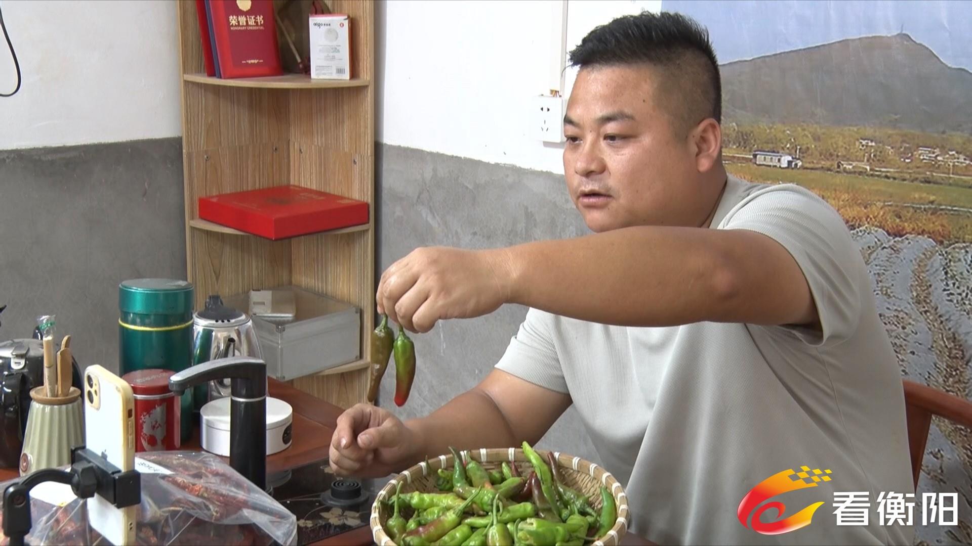 在常宁市洋泉镇高林村湘妹林林电子商务有限公司的直播带货工作室里,村民黄福兵捧着一盘新鲜的辣椒,聚精会神地向网民介绍其特点、用途及功效。随着当前村里及周边的辣椒大量丰收,黄福兵的辣椒加工厂和直播室里忙碌了起来。他告诉记者,目前电商平台上一天可以卖出2000多斤辣椒产品,基本上每天供不应求。
