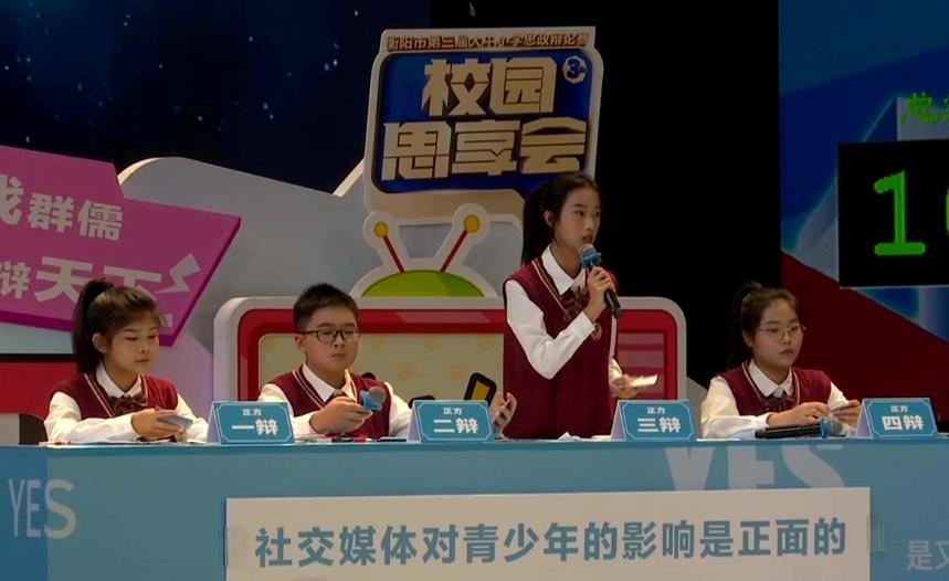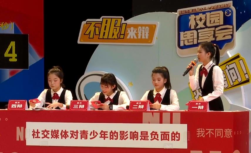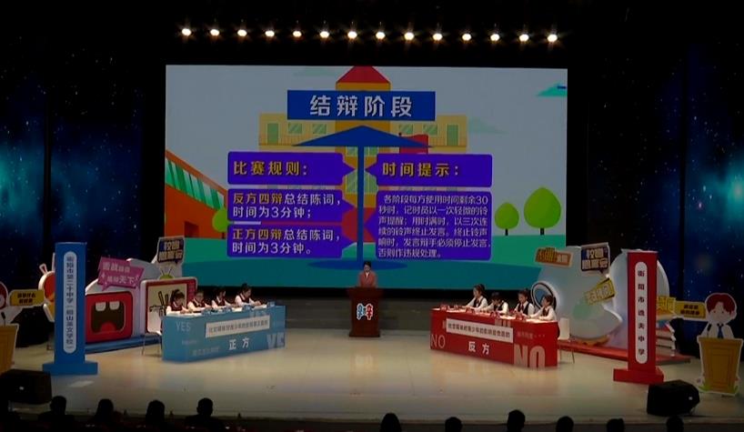 11月20日,在“校园思享会”衡阳市第三届大中小学思政辩论赛初中组第二场半决赛中,衡阳市第二十中学(船山英文学校)代表队和衡阳市逸夫中学代表队就“社交媒体对青少年的影响是正面的还是负面的"这一辩题,双方辩手结合多方实例来论证各自观点,妙语连珠,以清晰的逻辑赢得现场观众阵阵掌声。最终,衡阳市第二十中学(船山英文学校)代表队赢得比赛胜利,进入最终决赛。