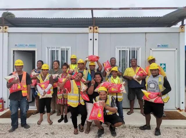 △中国企业为瑙鲁当地员工发放节日慰问品。