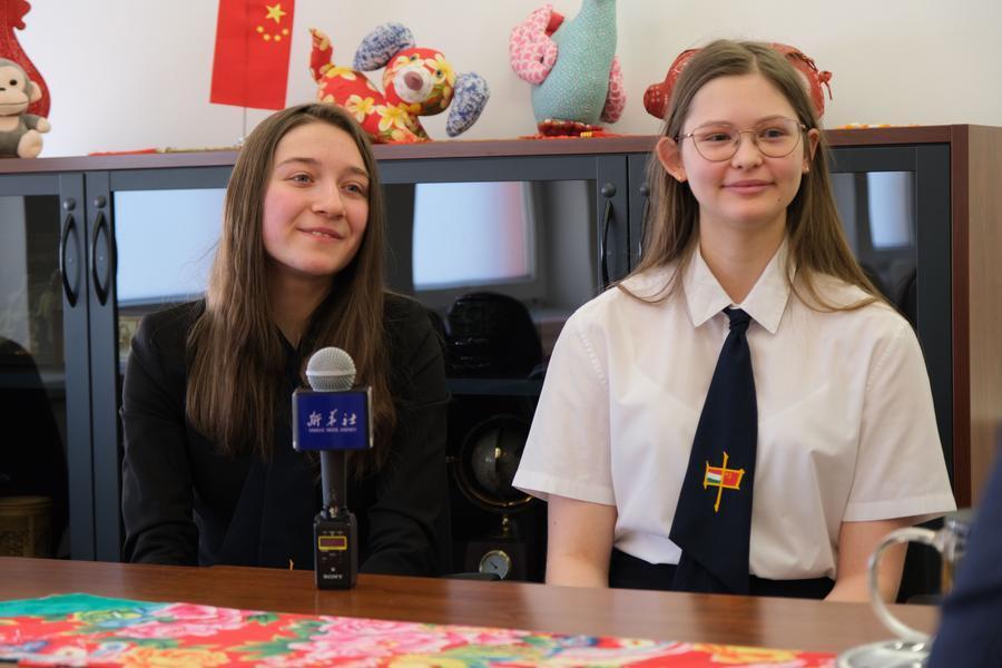 2023年2月7日,在匈牙利首都布达佩斯,匈中双语学校学生胡灵月(左)和宋智孝接受新华社记者采访。新华社记者 邓耀敏 摄