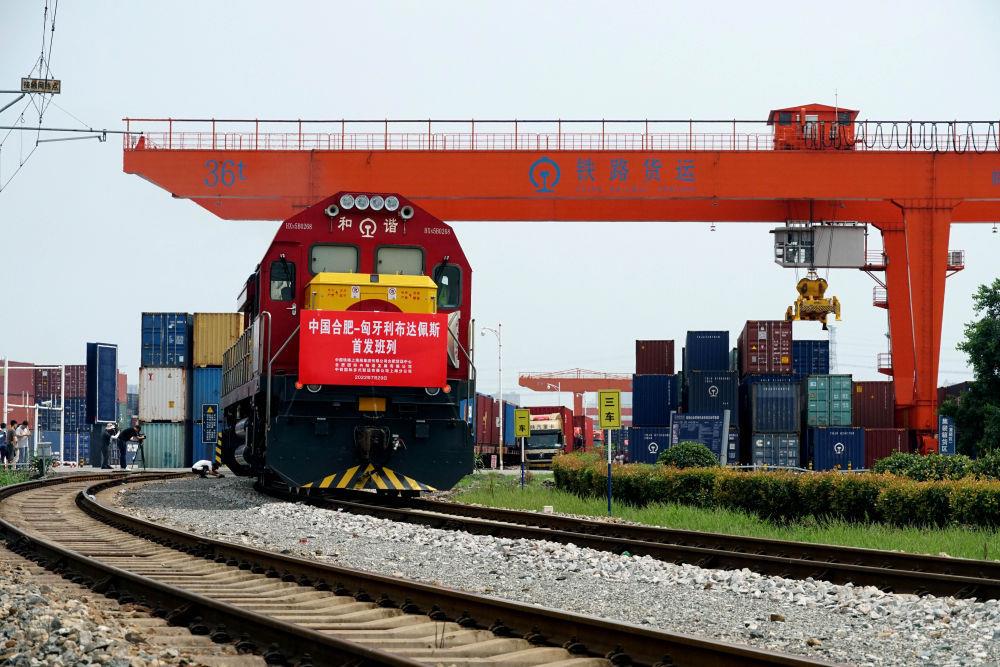 2022年7月29日,合肥至匈牙利布达佩斯的中欧班列从合肥北站物流基地驶出,标志着合肥中欧班列通往匈牙利布达佩斯的线路正式开通。新华社发(席静玉 摄)