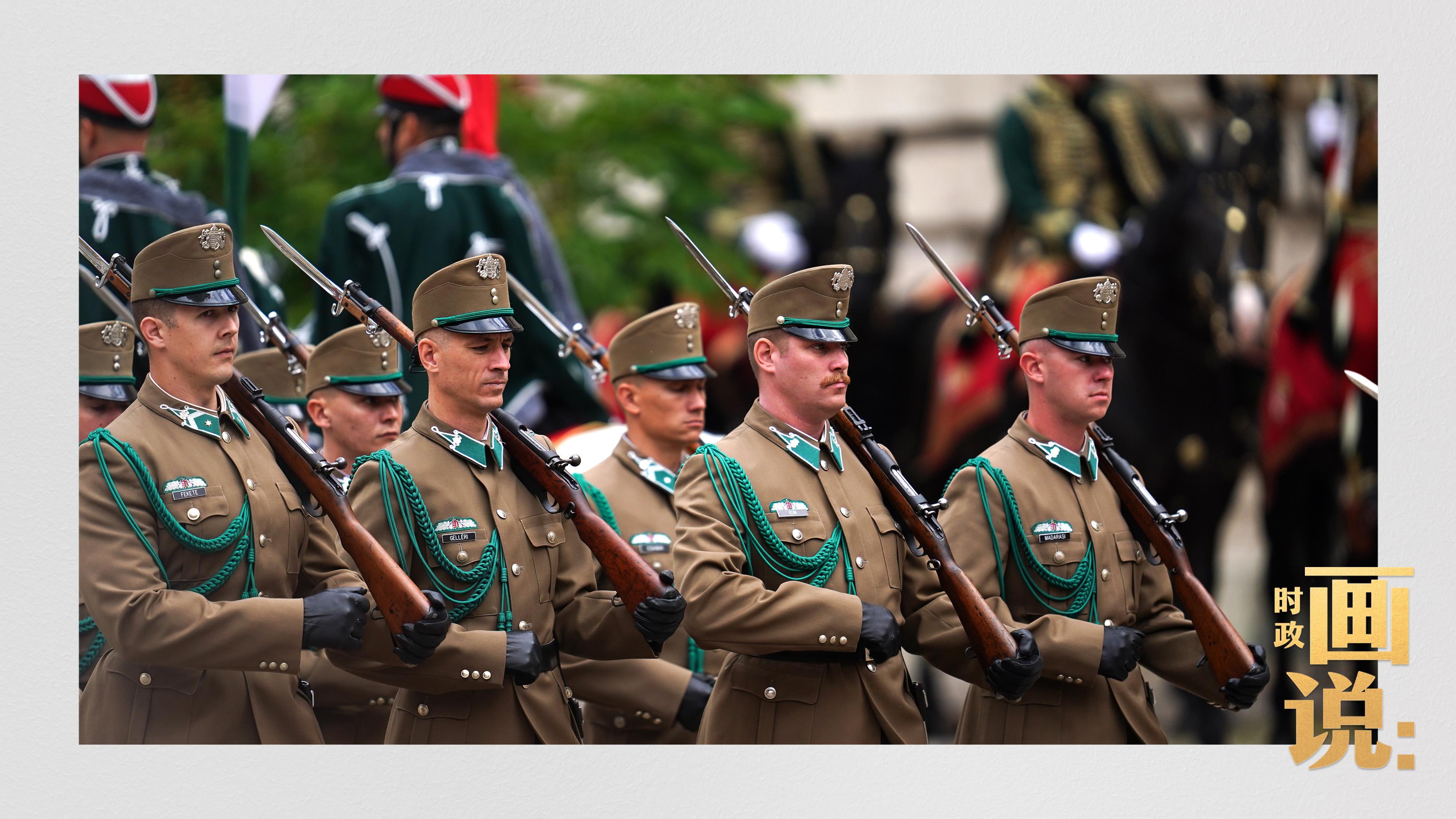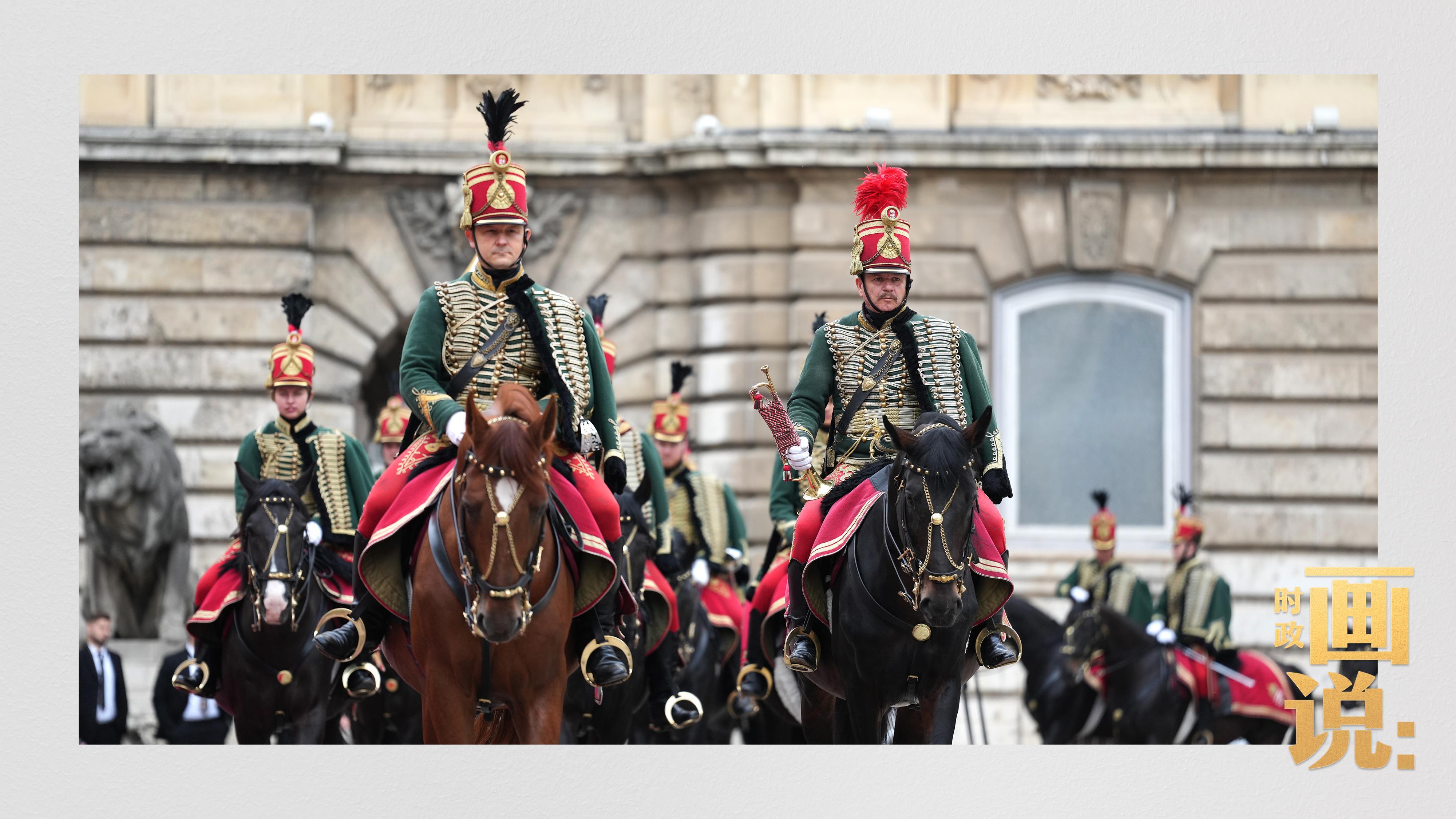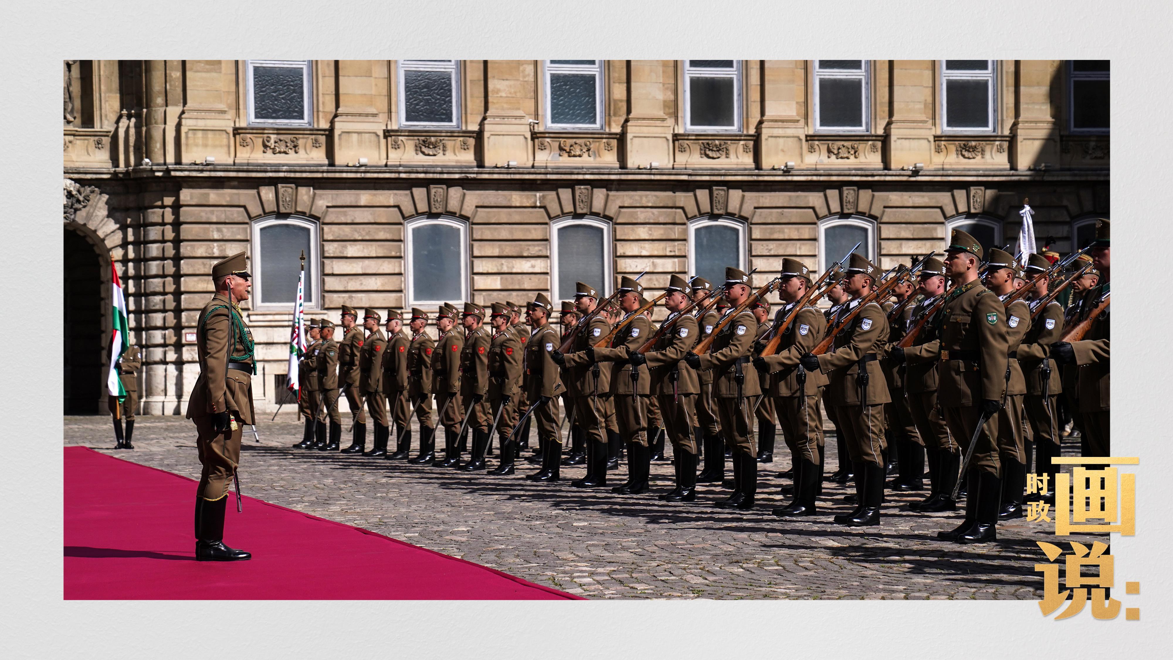当地时间5月9日上午,习近平主席出席匈牙利总统舒尤克和总理欧尔班在布达王宫内庭共同举行的隆重欢迎仪式。