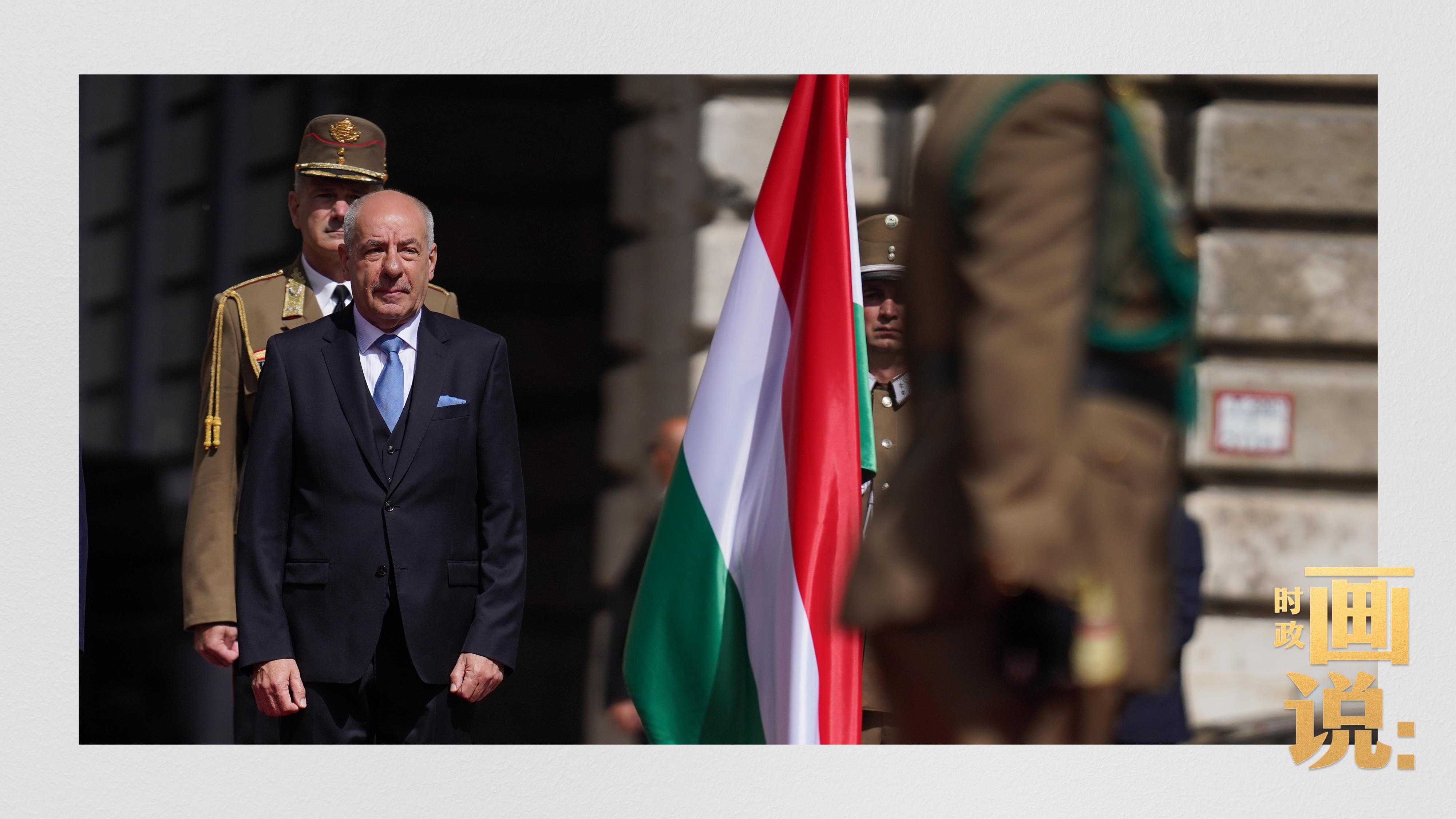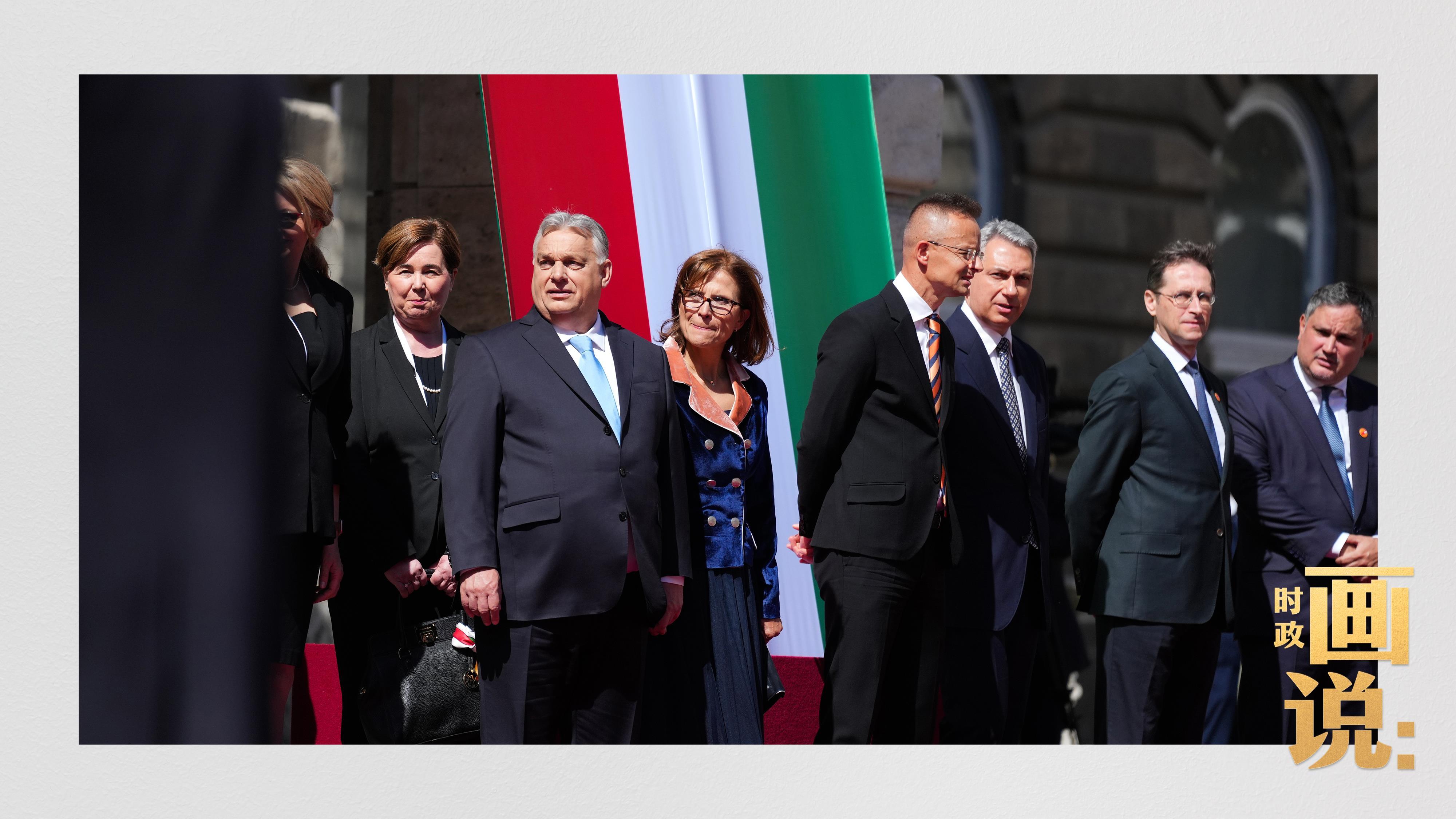 古老宏伟的布达王宫庄严矗立。 当地时间5月9日上午,习近平主席出席匈牙利总统舒尤克和总理欧尔班在布达王宫内庭共同举行的隆重欢迎仪式。 △习近平主席乘车抵达布达王宫,舒尤克总统夫妇和欧尔班总理夫妇在习主席下车处提前等候,热情迎接。 △舒尤克总统。 △欧尔班总理夫妇在仪式现场(左二)。