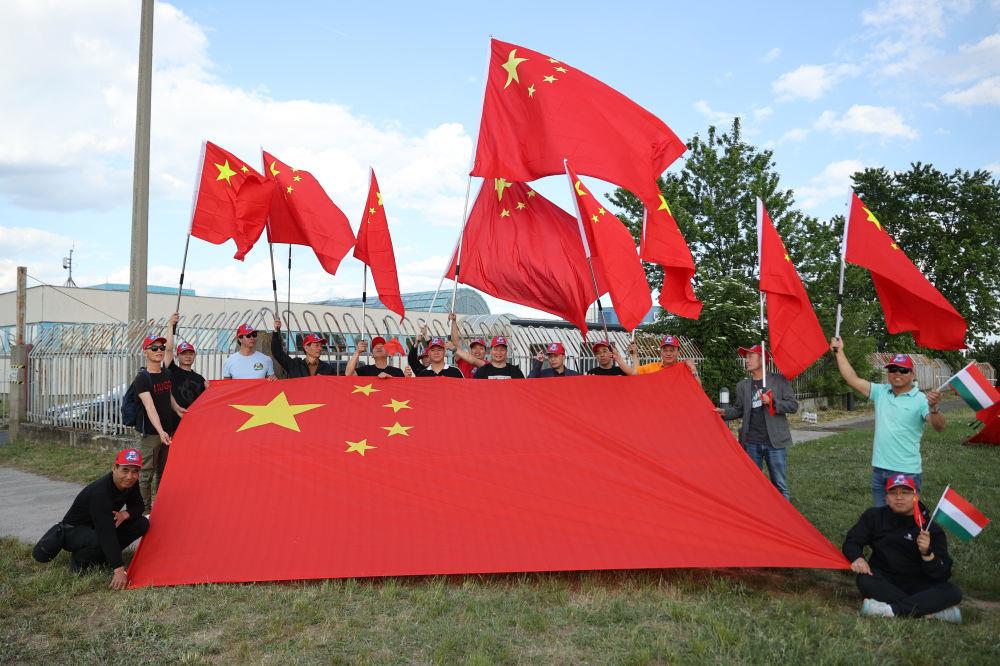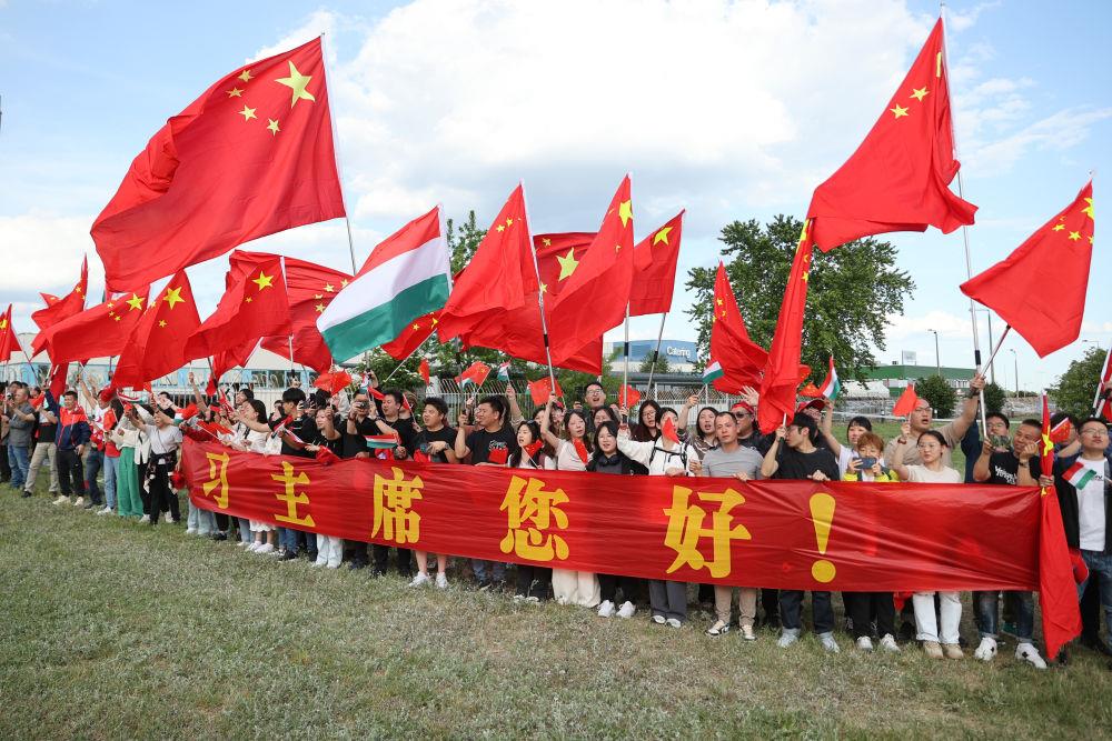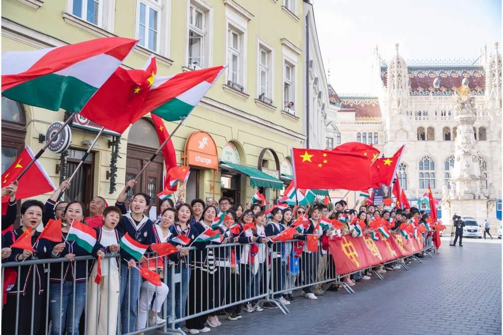 赴机场途中,旅匈华人华侨和留学生聚集在道路两旁,挥舞中匈两国国旗,举着写有“中匈友谊万岁”等横幅,热烈欢送习近平主席,祝贺访问取得圆满成功。