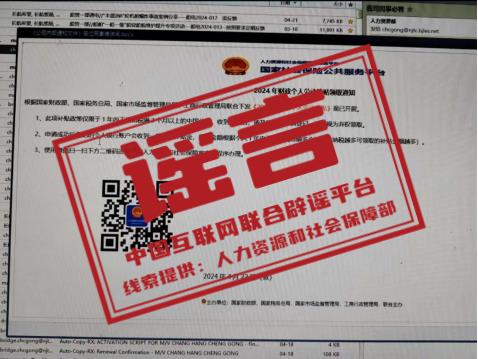 真相:近日,有网民收到一封“2024年财政个人劳动补贴领取通知”的邮件,称“补贴政策仅限于1年内工资扣税满3个月以上的中国公民,收到通知后,请及时进行申请登记,逾期视为弃权领取”,要求使用微信扫描所附二维码,进入“国家人力资源和社会保障官方小程序”办理。