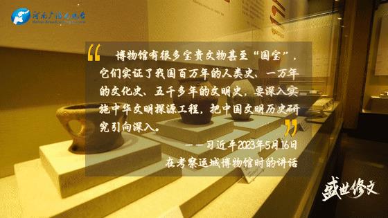 他强调,博物馆有很多宝贵文物甚至“国宝”,它们实证了我国百万年的人类史、一万年的文化史、五千多年的文明史,要深入实施中华文明探源工程,把中国文明历史研究引向深入。