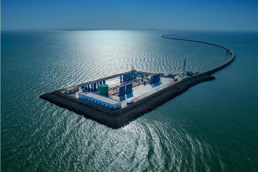 这是胜利油田青东5采油平台(无人机照片)。新华社发