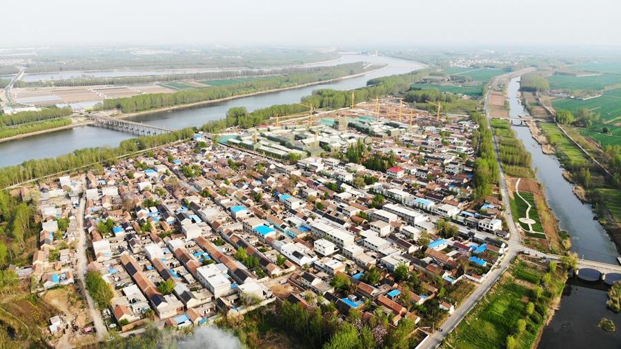 这是2021年4月13日拍摄的沂蒙老区临沭县曹庄镇朱村(无人机照片)。新华社记者 王凯 摄