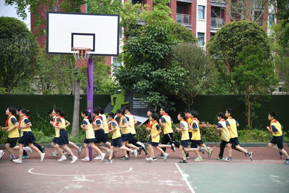 5月31日,学生在体育课上跑步。