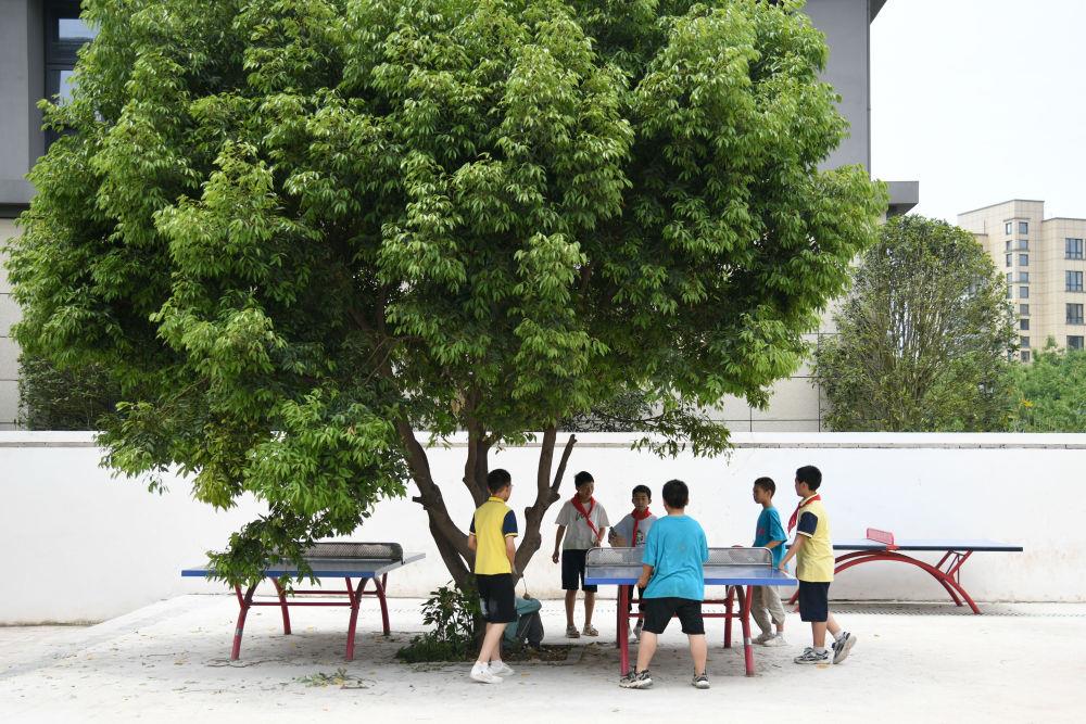 5月31日,学生在打乒乓球。