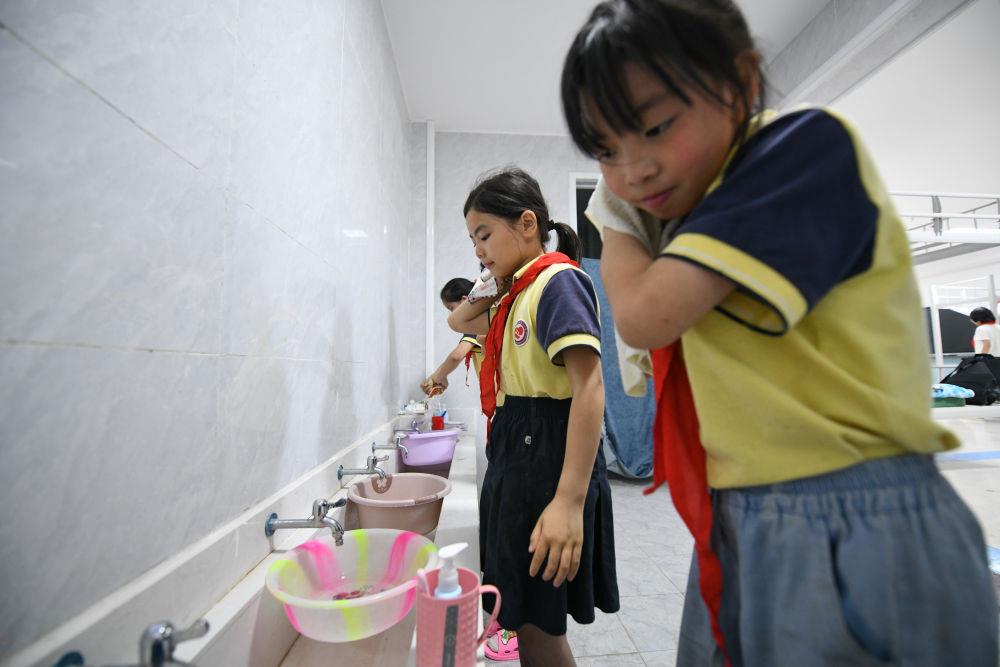 5月30日,学生在宿舍内洗漱。