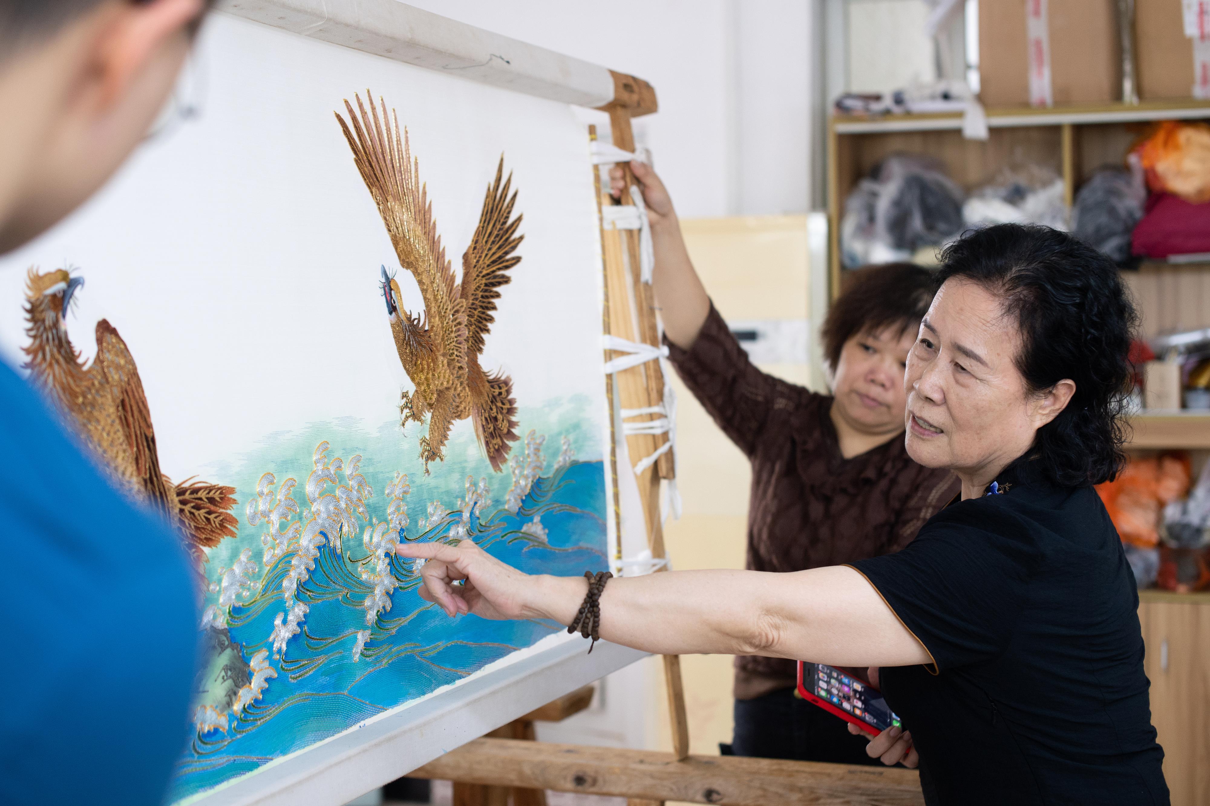 △ 国家级非物质文化遗产代表性项目粤绣(潮绣)代表性传承人康惠芳。