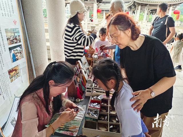 △ 广济桥上,“潮玩古城·潮州非遗集市”活动吸引游客体验。