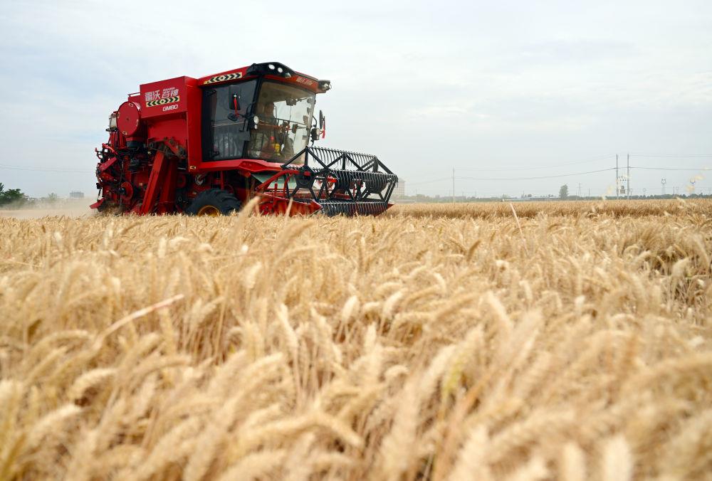 麦收时节,在安徽阜阳太和县,机器轰鸣,麦浪翻滚如金色绸缎,饱满的麦粒装满一辆辆运粮车的货厢。