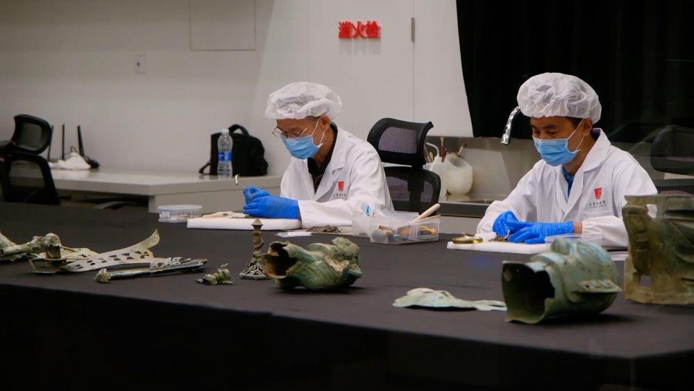 在一代一代考古工作者的手中,通天神树、青铜纵目面具、青铜鸟足神像……这些昔日蒙尘的器物恢复了原本的熠熠光彩。随着三星堆博物馆新馆建成投用,文化与科技在这里充分融合。