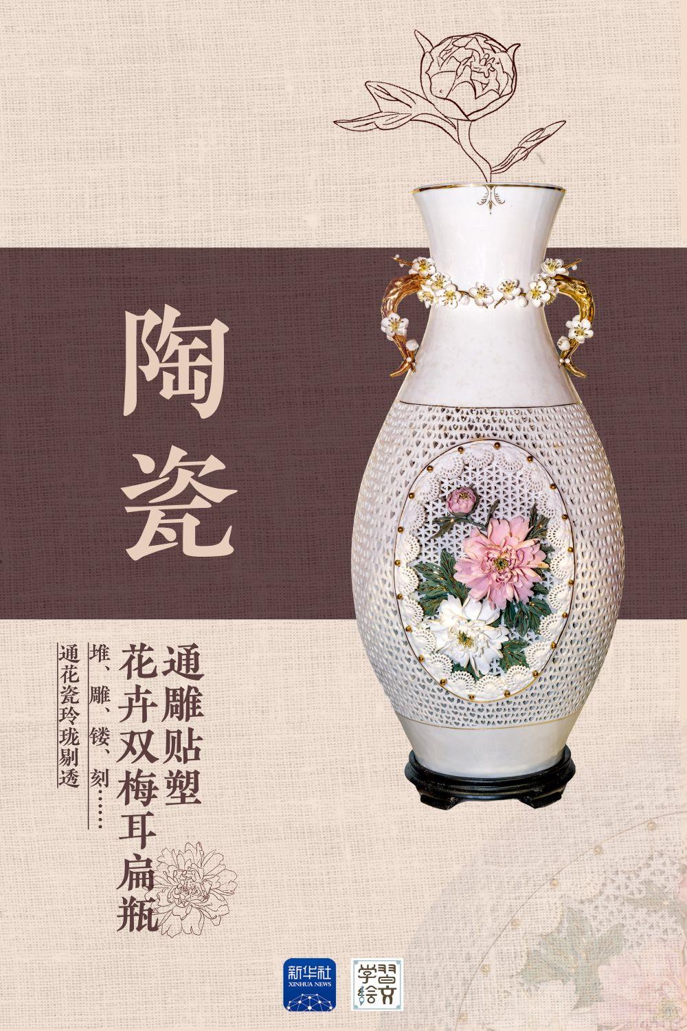 通花瓷器镂空可达5层之多,或施于釉上彩绘,或与浮雕、立雕相结合,或配以色土、腐蚀金等装饰,玲珑剔透,娟丽秀美。有的瓷瓣片下水不沉,落地不碎。