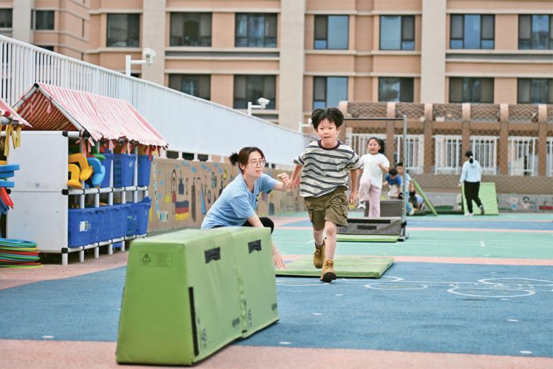 近年来,河北雄安新区通过创新教育发展体制机制、高标准配建教育设施、引入专业教师队伍、引进优质教育资源等方式,不断推动教育高质量发展。图为2024年5月23日,当地幼儿园的孩子们在室外活动。 新华社记者 牟宇/摄