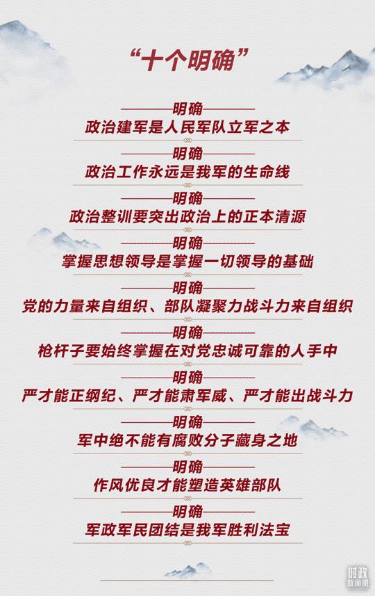 在10年前的古田全军政治工作会议上,习主席以“五个着力抓好”为新形势下我军政治工作“划重点”:着力抓好铸牢军魂工作,着力抓好高中级干部管理,着力抓好作风建设和反腐败斗争,着力抓好战斗精神培育,着力抓好政治工作创新发展。
