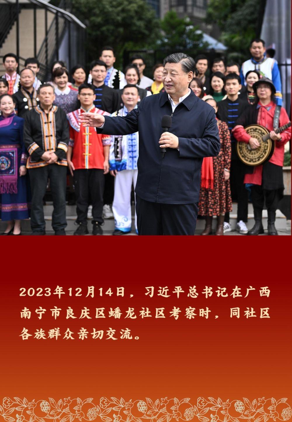 以习近平同志为核心的党中央高度重视民族工作,十分关心少数民族群众。习近平总书记多次深入民族地区考察调研,同各族群众亲切交流,勉励大家铸牢中华民族共同体意识,像石榴籽那样紧紧抱在一起。