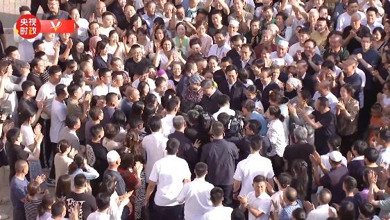 6月19日傍晚时分,宁夏银川市金凤区长城花园社区广场,习近平总书记在这里考察即将结束时,居民们依依不舍,纷纷涌上前去,围绕着总书记鼓掌欢呼,争相与总书记握手。