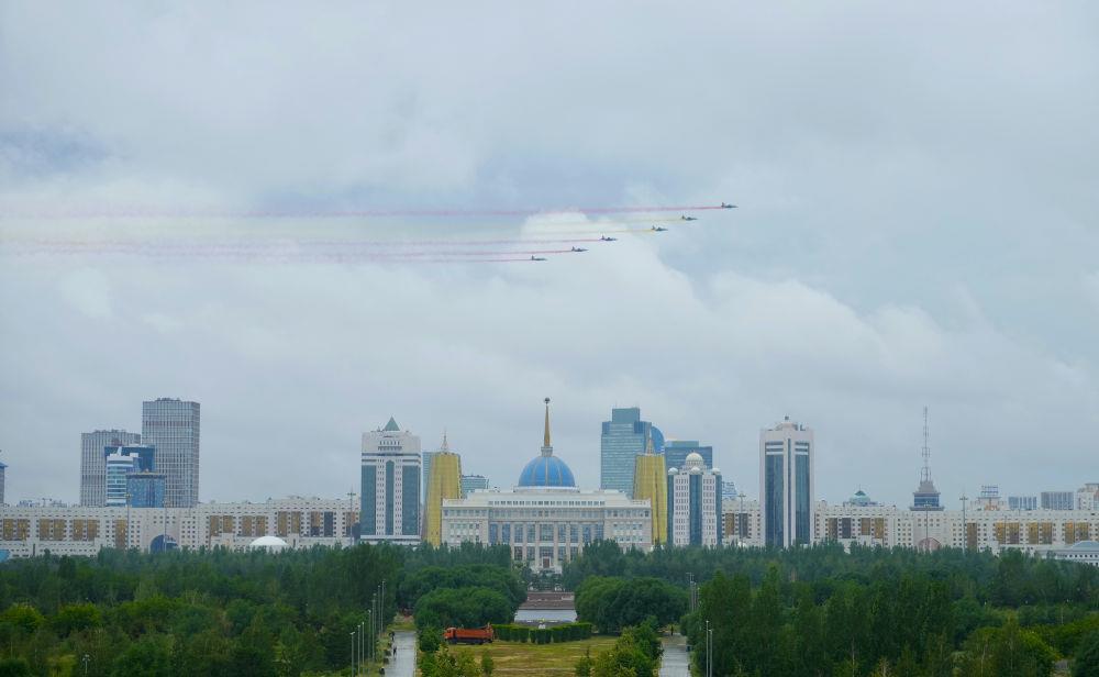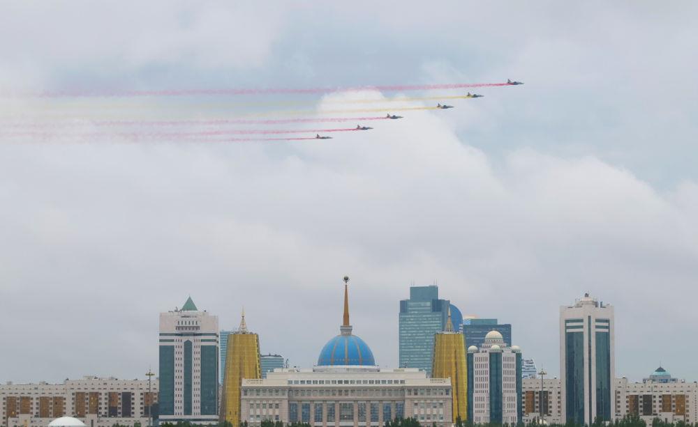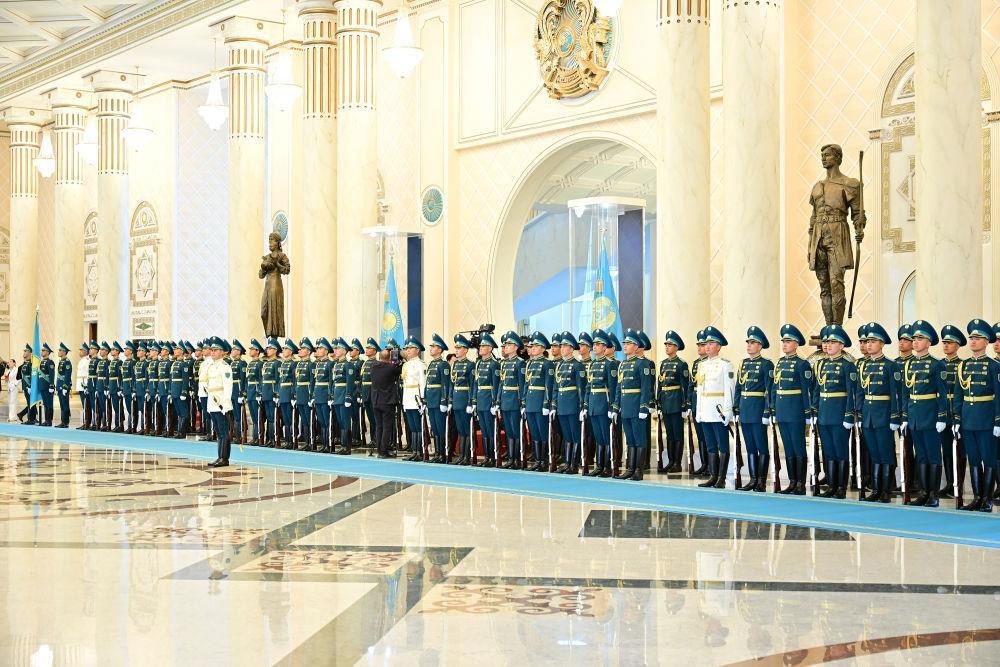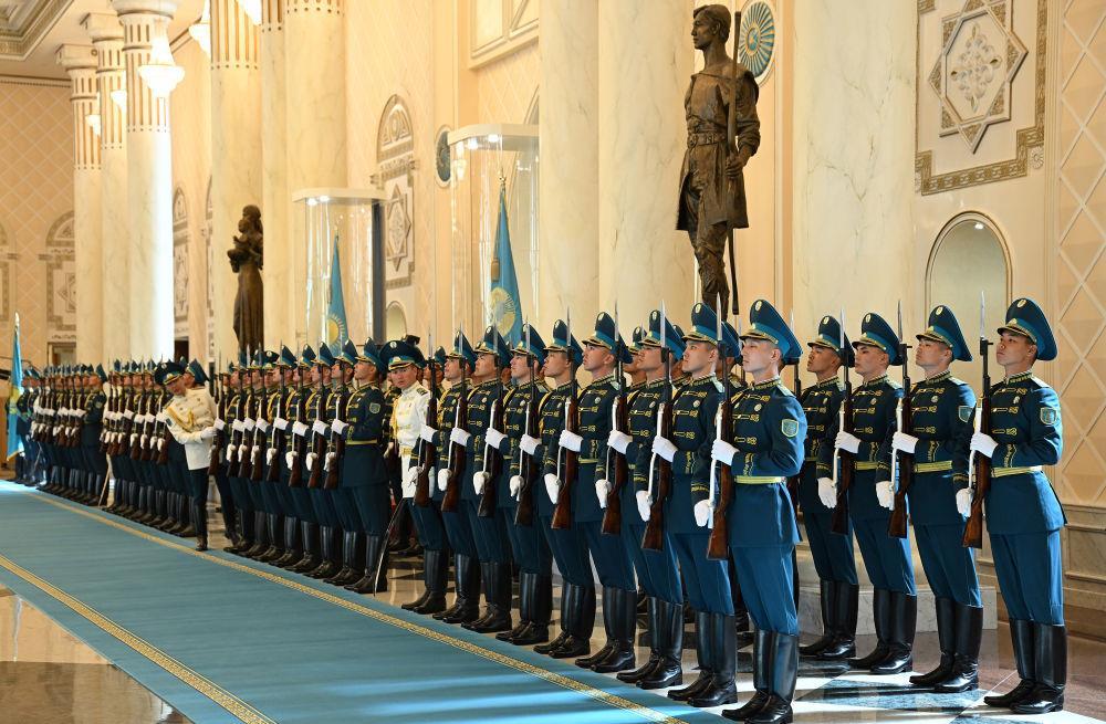 当地时间3日,国家主席习近平在阿斯塔纳出席哈萨克斯坦总统托卡耶夫举行的欢迎仪式。