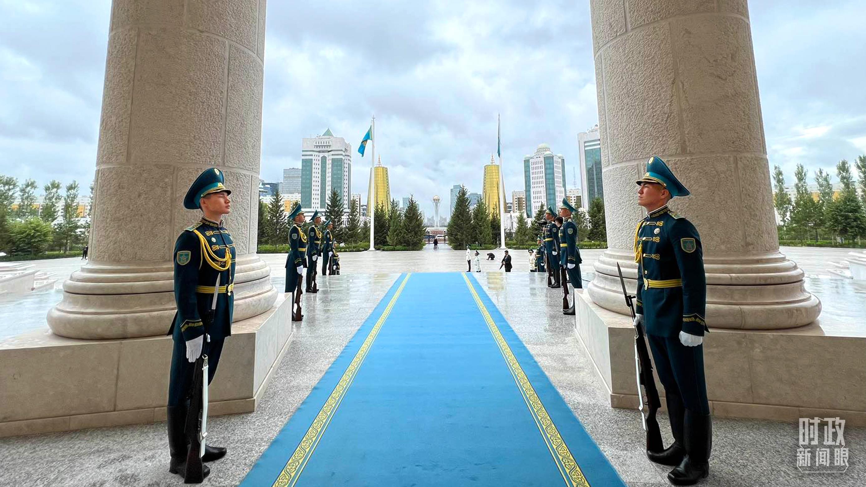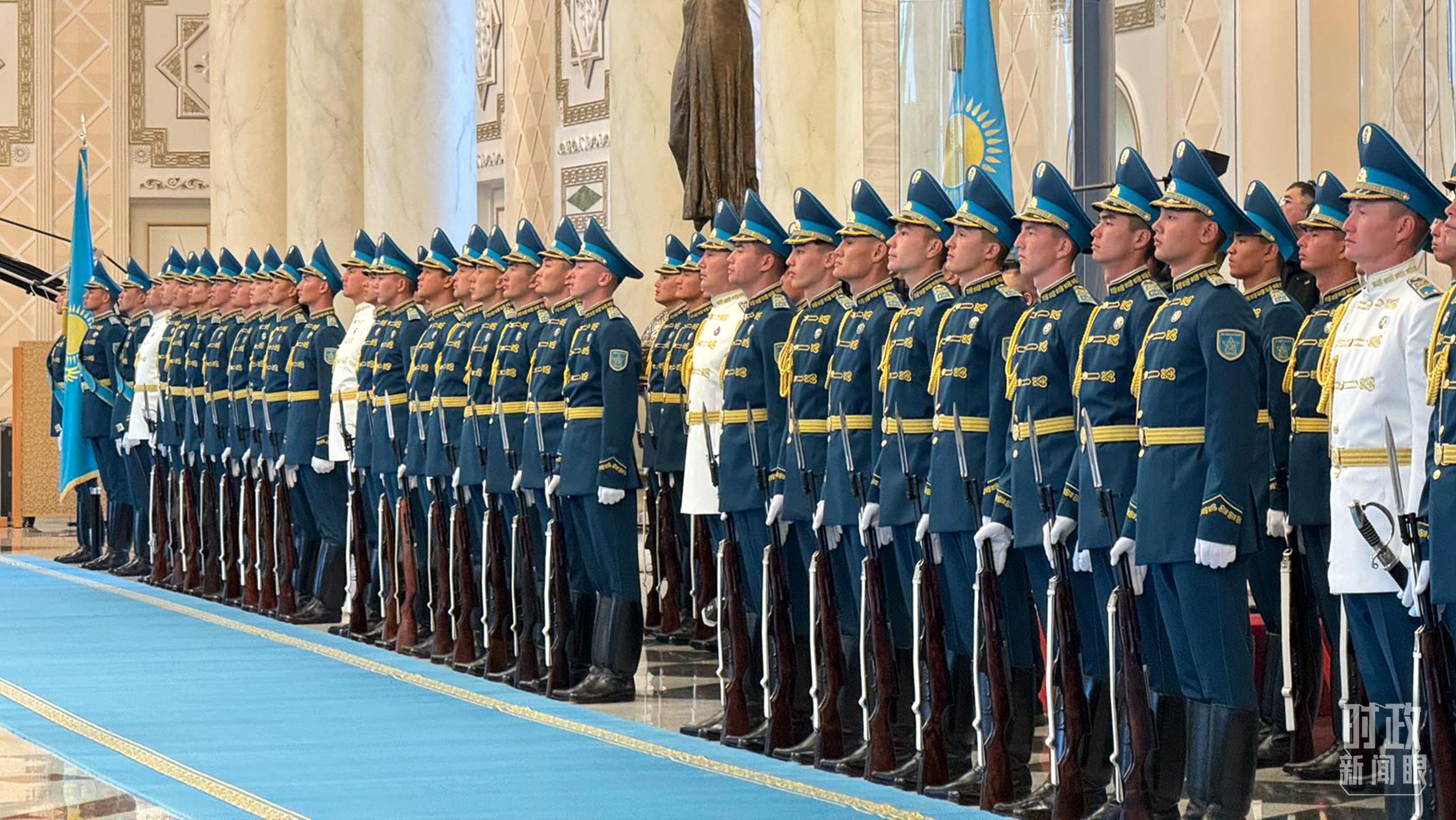 △哈萨克斯坦以最高礼仪欢迎习近平主席。(总台央视记者张洛嘉拍摄)