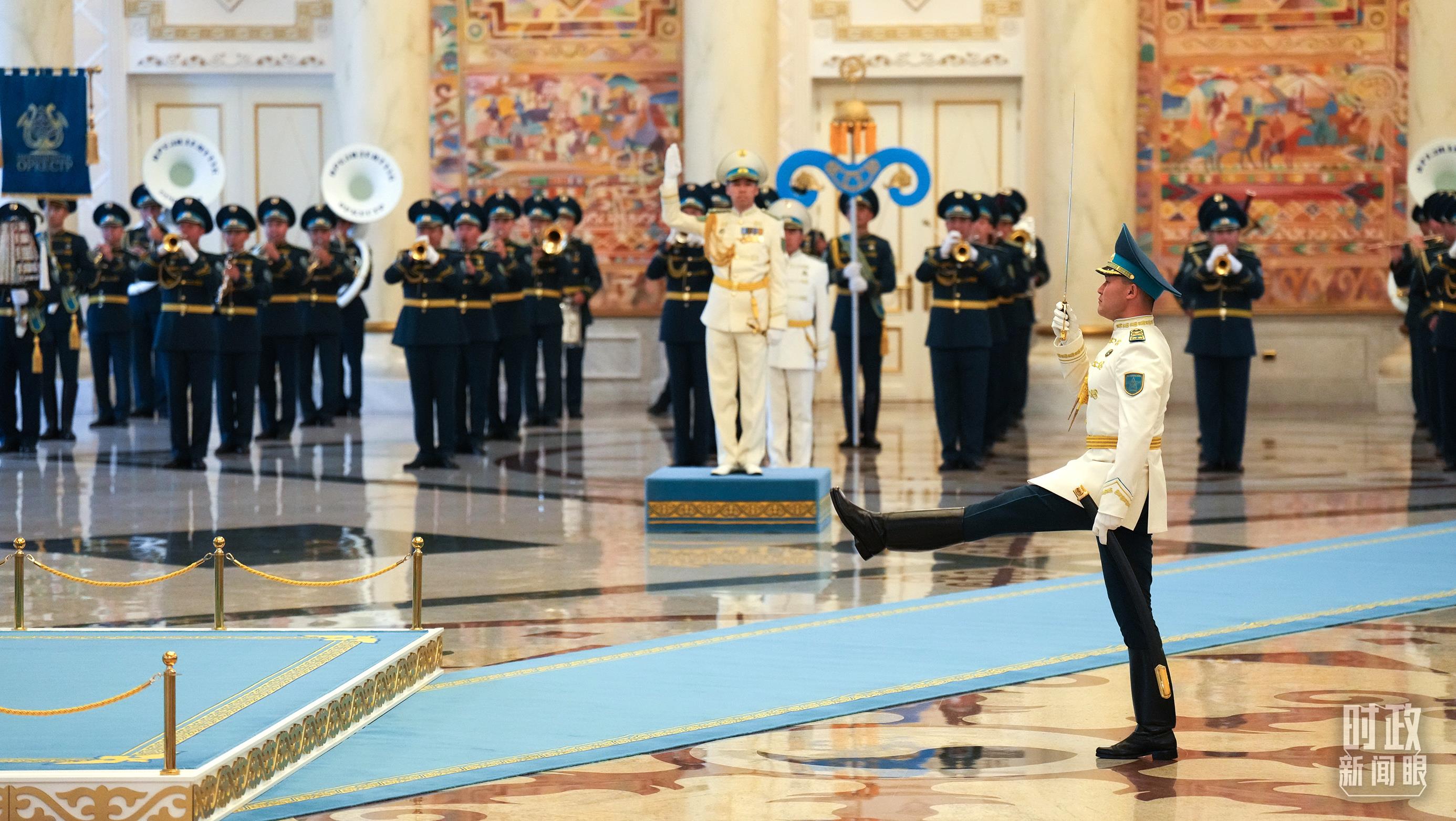 △哈萨克斯坦总统府礼兵。(总台国广记者李晋拍摄)