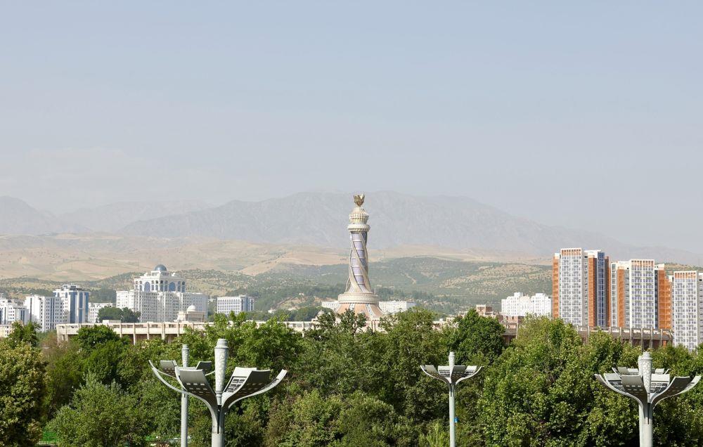 ↑位于杜尚别的独立与自由塔。 新华社记者 申宏 摄