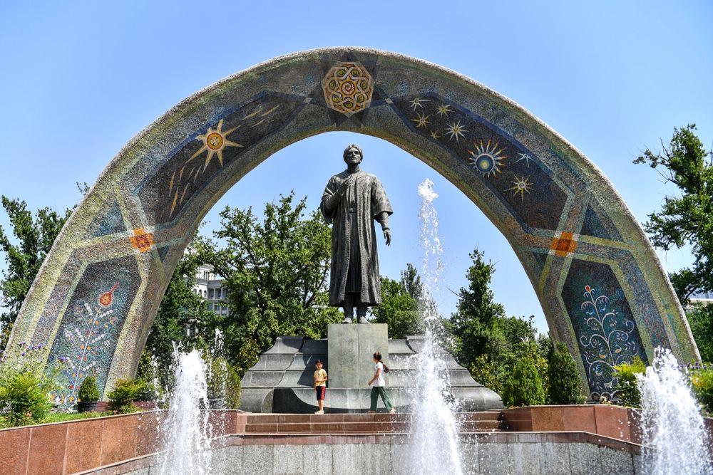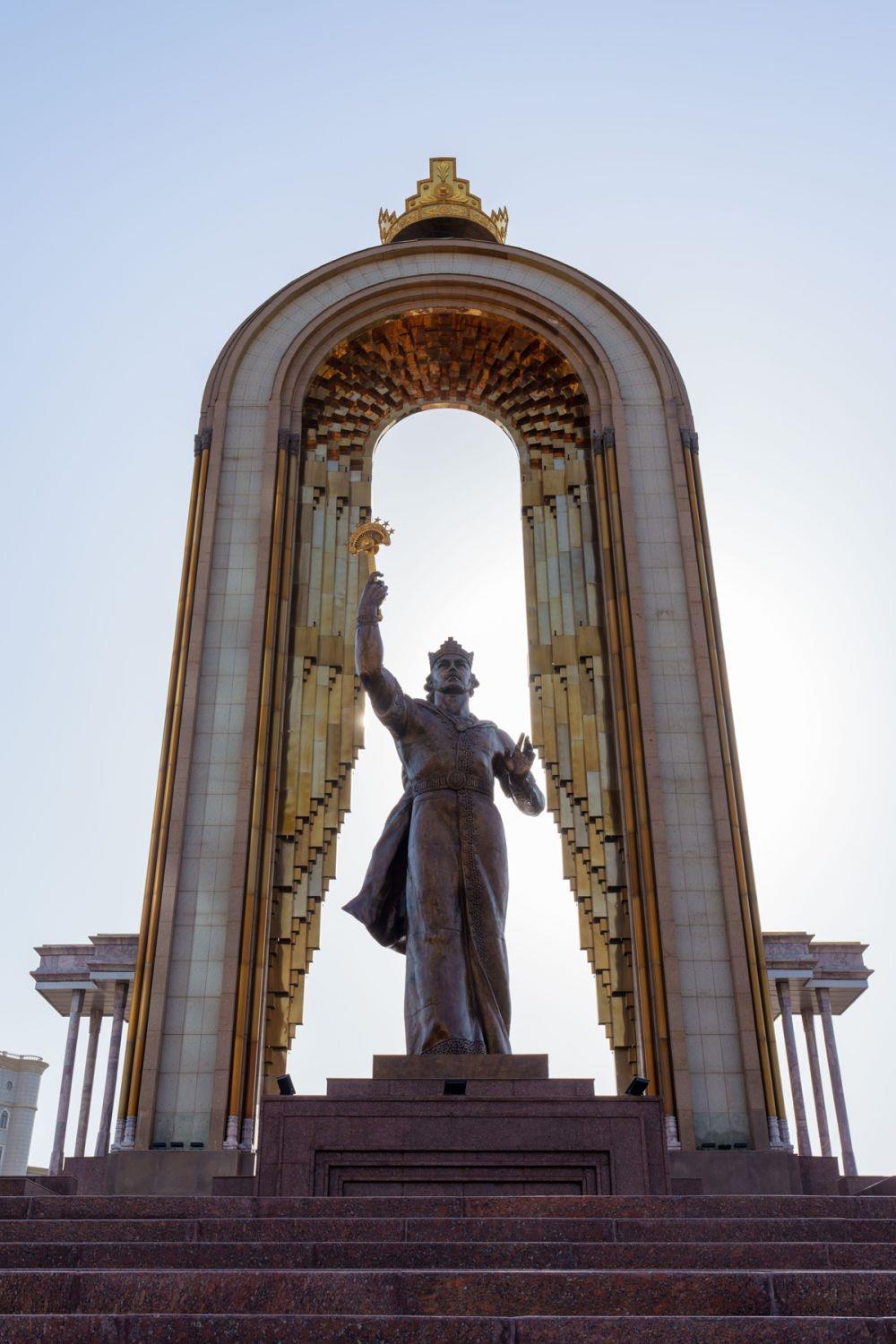 ↑位于杜尚别的索莫尼纪念碑。 新华社记者 周荻潇 摄