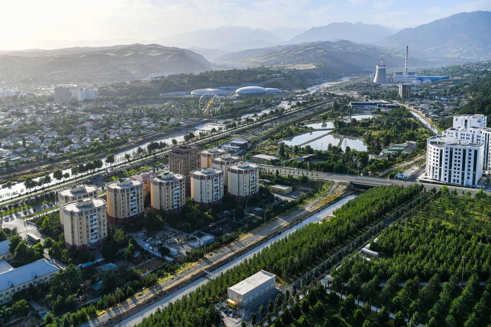 6月26日,从独立与自由塔上眺望,奔腾的瓦尔佐布河穿城而过,杜尚别城市风光尽入眼帘。