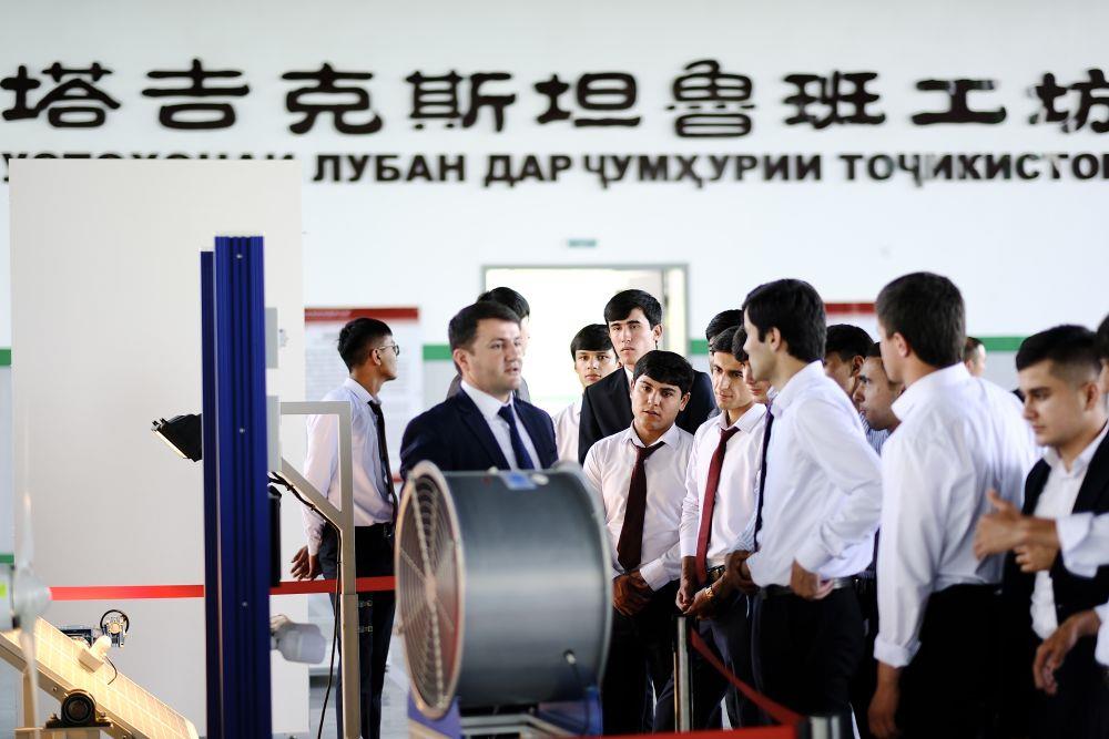6月14日,在塔吉克斯坦首都杜尚别,学生们在鲁班工坊内听老师讲解。