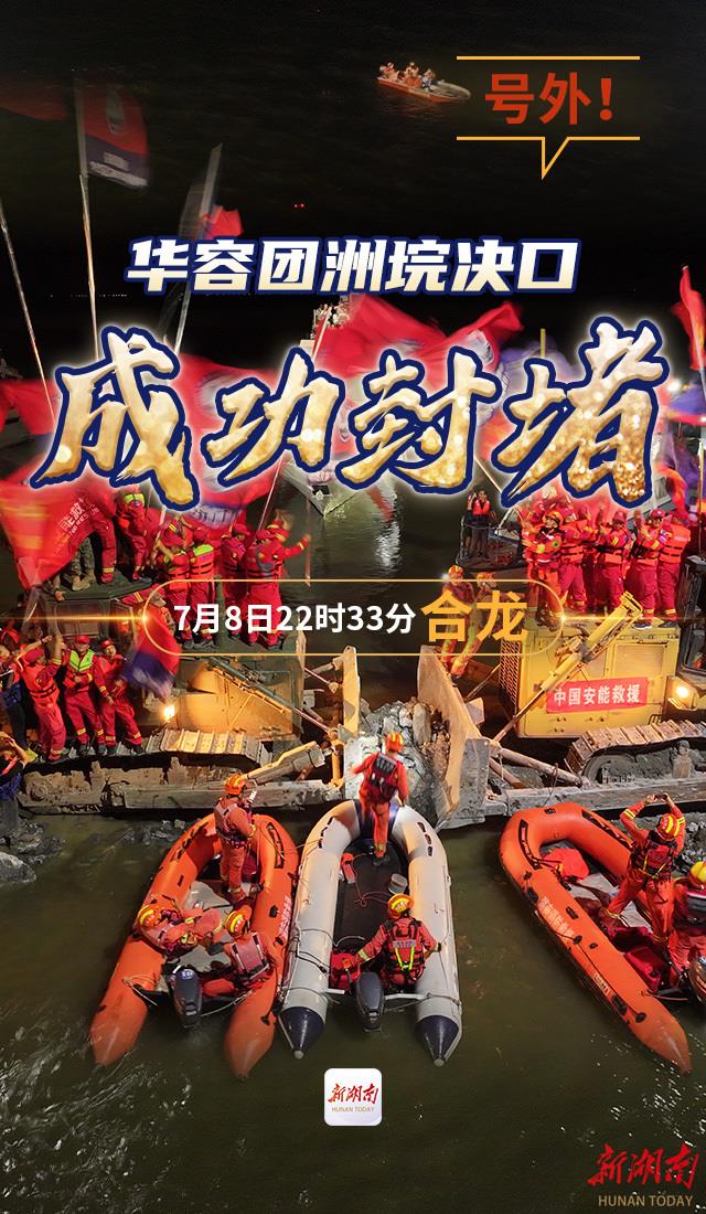 湖南日报7月8日讯(全媒体记者 奉永成 王亮 郑旋)7月8日22时33分,经过两天两晚全力封堵,华容县团洲乡团北村洞庭湖一线堤防决口成功合龙。