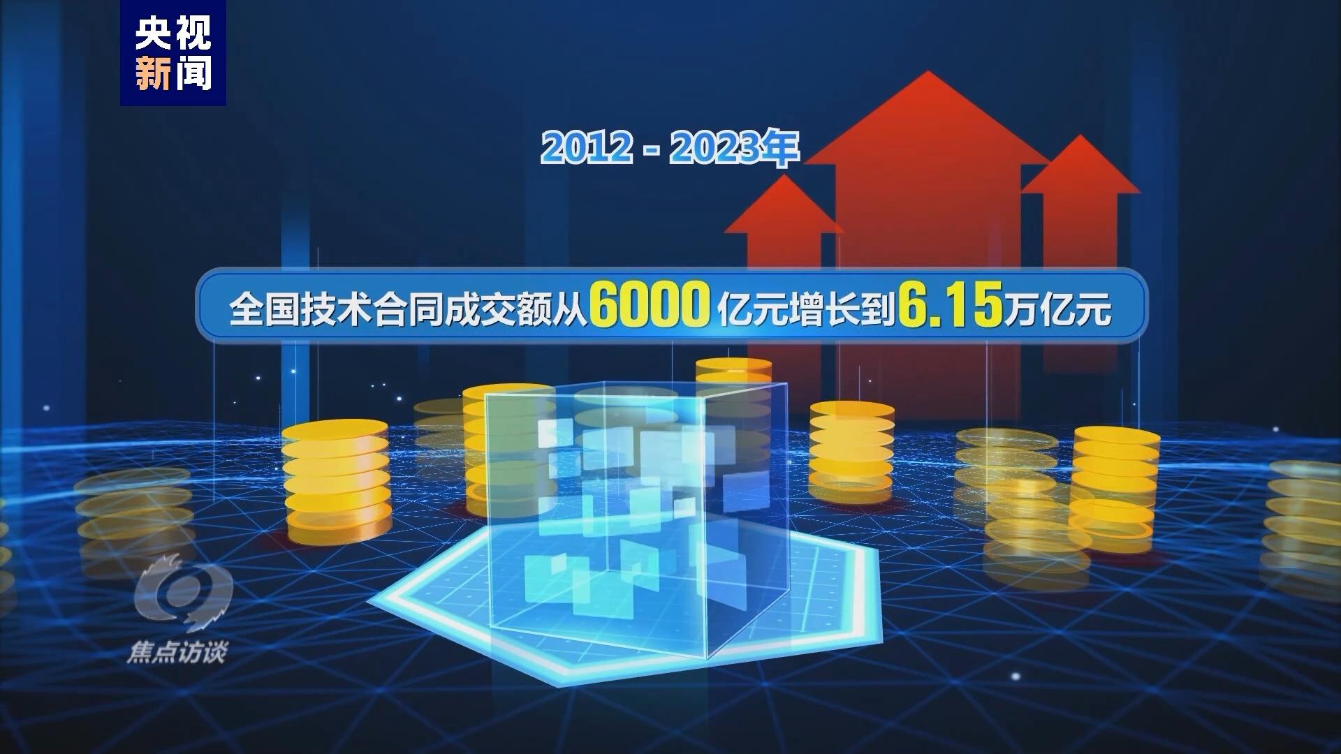 党的十八大以来,我国形成了一批支持科技成果转化的链条和平台。通过修订《促进科技成果转化法》等法律法规,将科技成果转化中的使用权、处置权、收益权等,尽可能地赋予科技创新的主体和人员。2012—2023年,全国技术合同成交额从6000亿元增长到6.15万亿元。