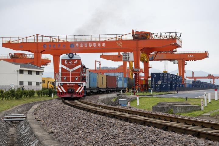 一列满载货物的“义新欧”中欧班列发车。拍友 胡肖飞 摄
