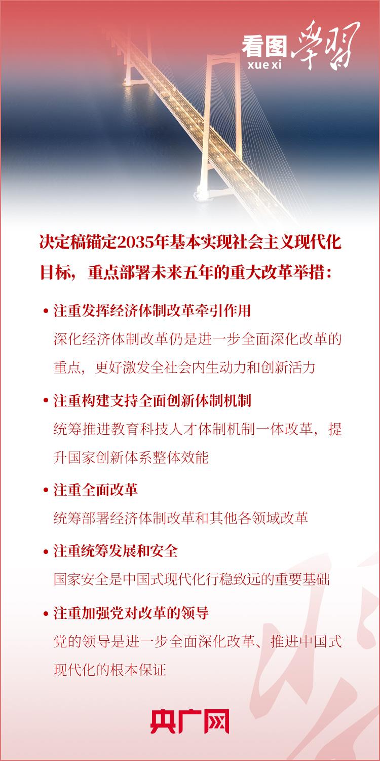 从征求和确定全会议题到起草文件、深入调查研究、广泛征求意见、开展专题论证、反复讨论修改,习近平总书记指出,决定稿锚定2035年基本实现社会主义现代化目标,重点部署未来五年的重大改革举措。“五个注重”成为《决定》内容摆布鲜明特点。一起来学习!