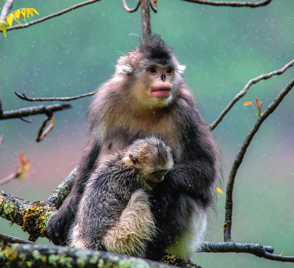 云 南 迪 庆 藏族自治州香格里拉滇金丝猴国家公园里的滇金丝猴(资料照片)胡超摄 / 本刊